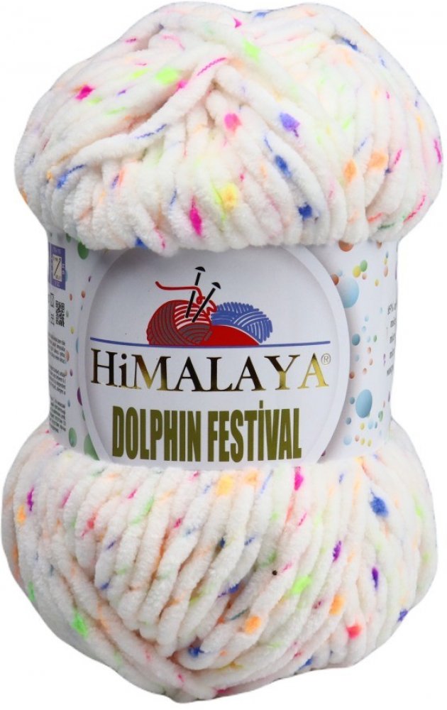 Himalaya Dolphin Festival je žinylková příze s barevným vláknem a nopky. Vlákno je obmotáno kolem příze.