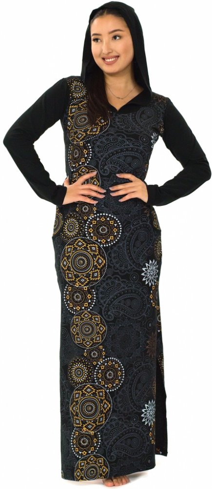Dlouhé šaty s kapucí Priya - černá s béžovou