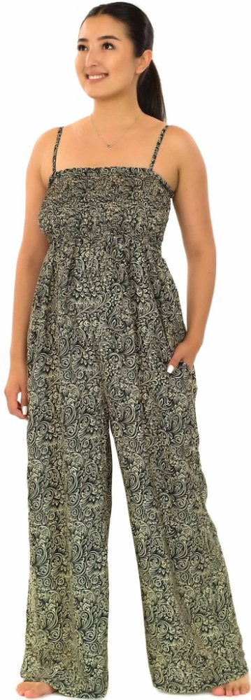 Tento parádní kalhotový overal na ramínka je nejen originální, ale také velmi pohodlný. Široké žabičkování ve vrchní části vytvoří krásnou siluetu, široké nohavice zase zajistí úžasné pohodlí. Overal má špagetová ramínka, která se dají nastavit podle potřeby, a dvě boční kapsy.