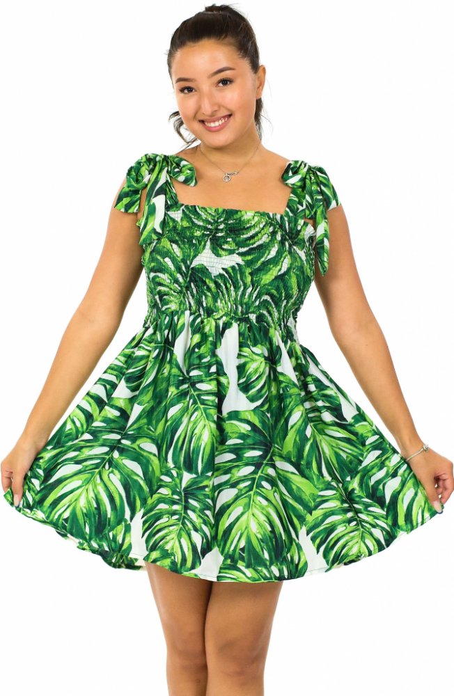 Himalife Mini šaty 2v1 Ezra Monstera zelená s bílou