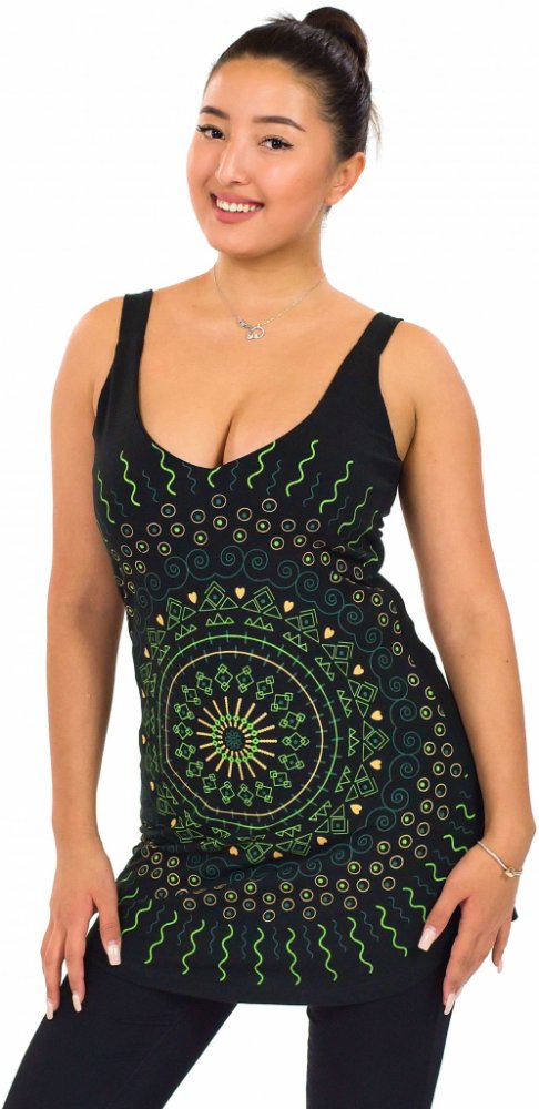 Originální a krásné šaty jsou dokonalou kombinací barev a mandal. Postavě lichotící střih skvěle podtrhuje ženské křivky a vykouzlí krásnou siluetu. Šaty jsou bez rukávů a mají kulatý výstřih. Vyrobené jsou z velmi příjemné pružné úpletové bavlny s lycrou.