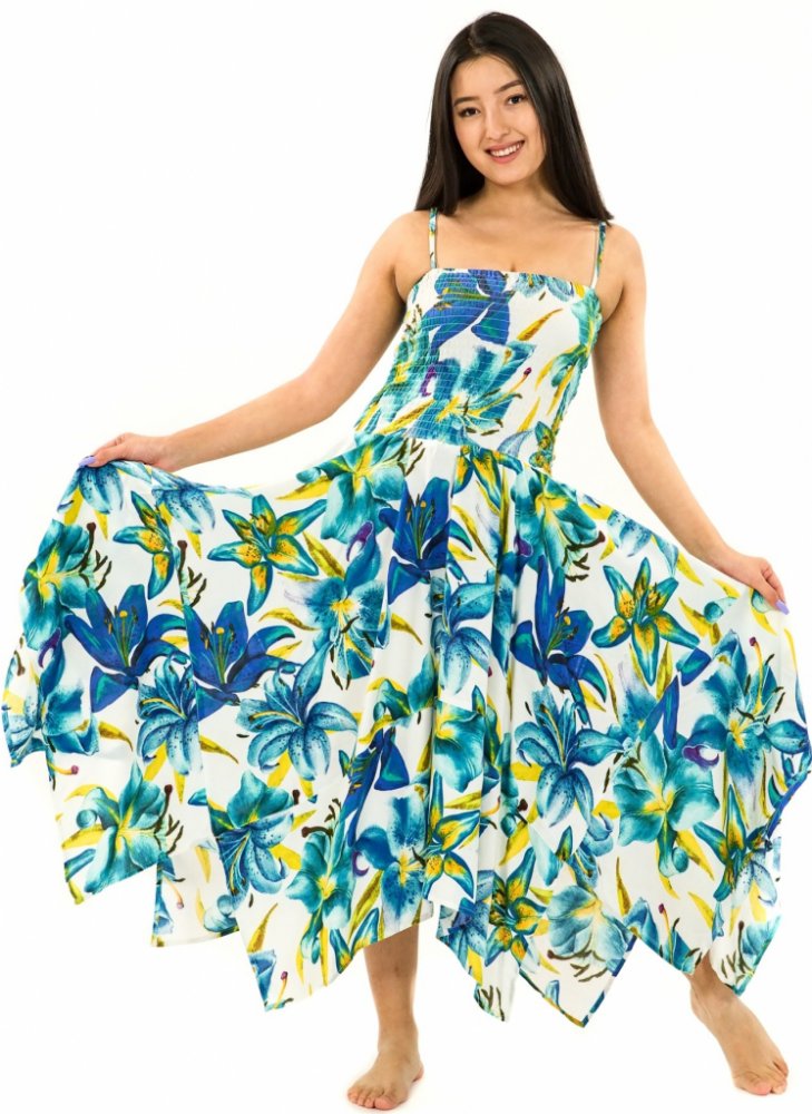 Himalife šaty 2v1 Dawa Lilie bílá s tyrkysovou