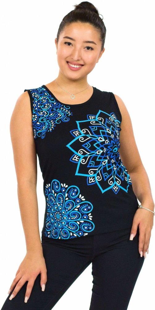 Krásné tílko s originálním potiskem by určitě nemělo chybět ve vaší skříni, protože se skvěle hodí jak k sukním, tak ke kraťasům či kalhotám, a určitě se v něm budete cítit skvěle. Naše tílko Pixie má kulatý výstřih, širší ramínka a zdobí jej ručně natištěné mandaly v nádherných barvách.