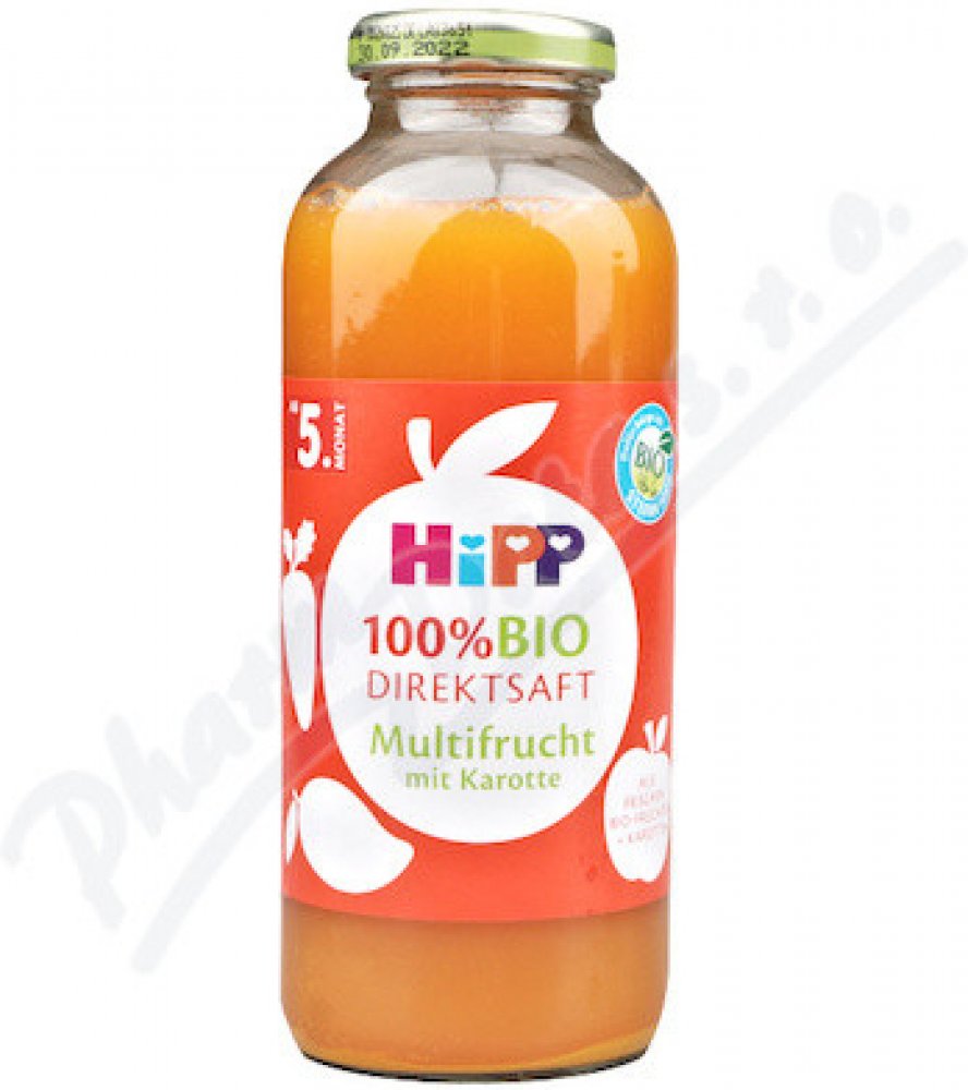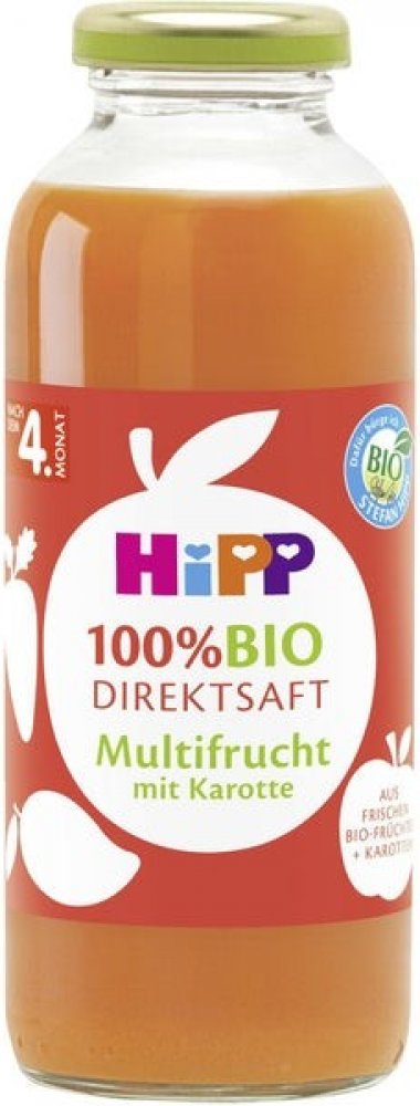 HiPP 100% BIO JUICE Ovocná šťáva s karotkou LISOVANÁ Z ČERSTVĚ SKLIZENÉ BIO MRKVE A BIO OVOCE, od uk. 4. měsíce, 330 ml HiPP 100% BIO JUICE Ovocná šťáva s karotkou