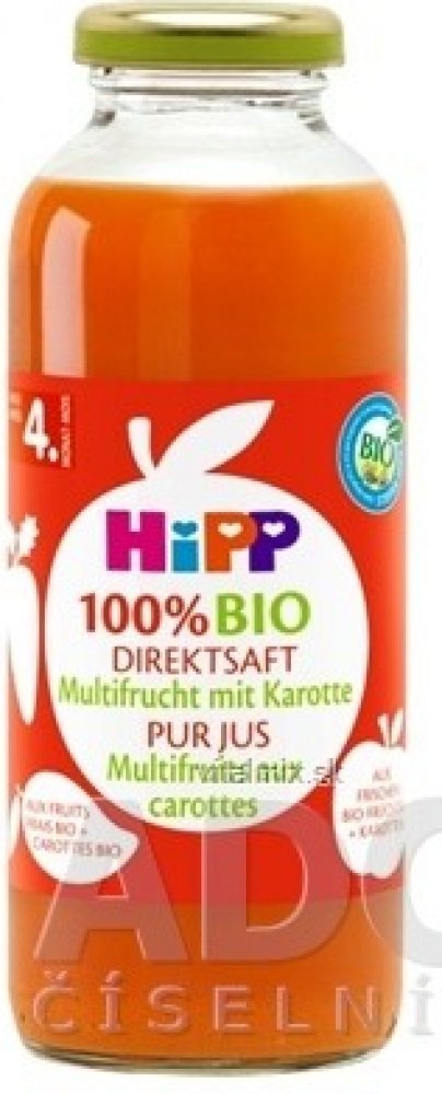 Šťáva lisovaná z čerstvě sklizené BIO mrkve a BIO ovoce nejvyšší