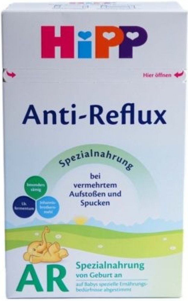 Karubin (svatojánský chléb) - přirozené zahušťovadlo, díky kterému je výživa zahuštěná a potrava tak zůstává v žaludku déle. Tím se snižuje návrat potravy do jícnu (reflux) a tedy i ublinkávání. Mouka z karubinu (svatojánského chleba) je hodnotná přírodní vláknina, proto je možné, že se při přechodu na HiPP Anti-Reflux změní konzistence stolice na řidší. Přírodní mléčné kultury L. fermentum, které se přirozeně vyskytují v mateřském mléce. Mateřské mléko přirozeně obsahuje probiotické kultury – v individuální variabilitě a množství