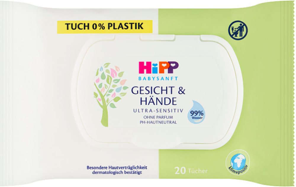 Hipp Baby Ultra sensitive - vlhčené cestovní ubrousky pro děti - 20Ks kvalitní německé vlhčené ubrousky pro děti, pro citlivou až přecitlivělou pokožku.Balení v uzavíratelném obale 20Ks