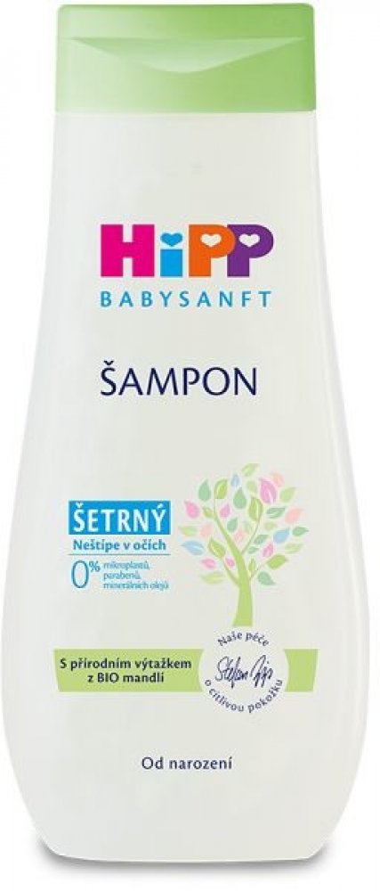 HiPP Jemný šampón s cennými přírodními složkami z BIO mandlíšetrně myje dětské vlásky a pečuje o citlivou pokožku hlavy. Neobsahuje mýdlo, zachovává přirozený kyselý plášť pokožky, udržuje její přirozené pH a neštípe do očí. Po umytí budou vlásky jemné a lesklé. Je vhodný od narození, i pro pokožku se sklonem k atopické dermatitidě.