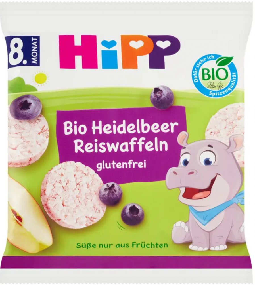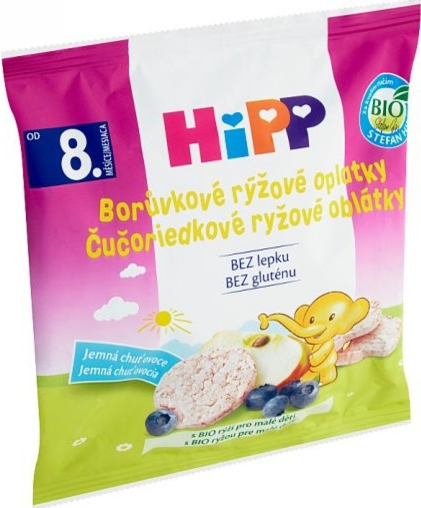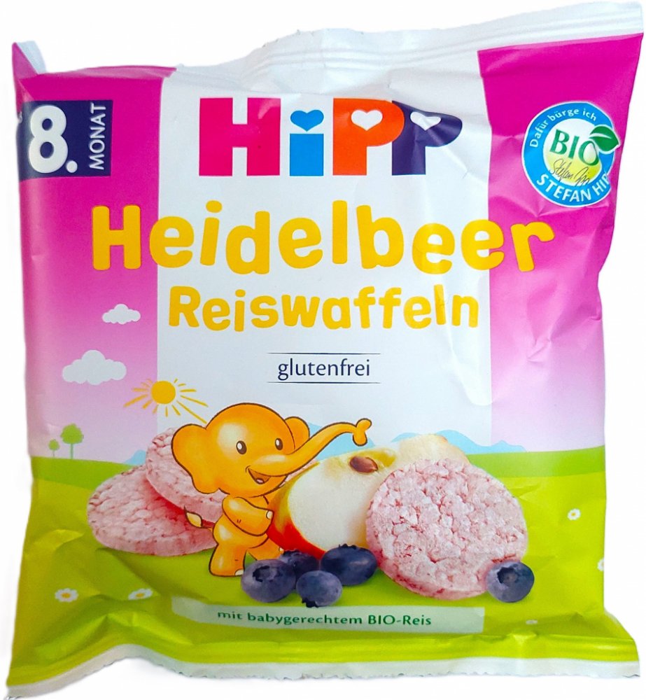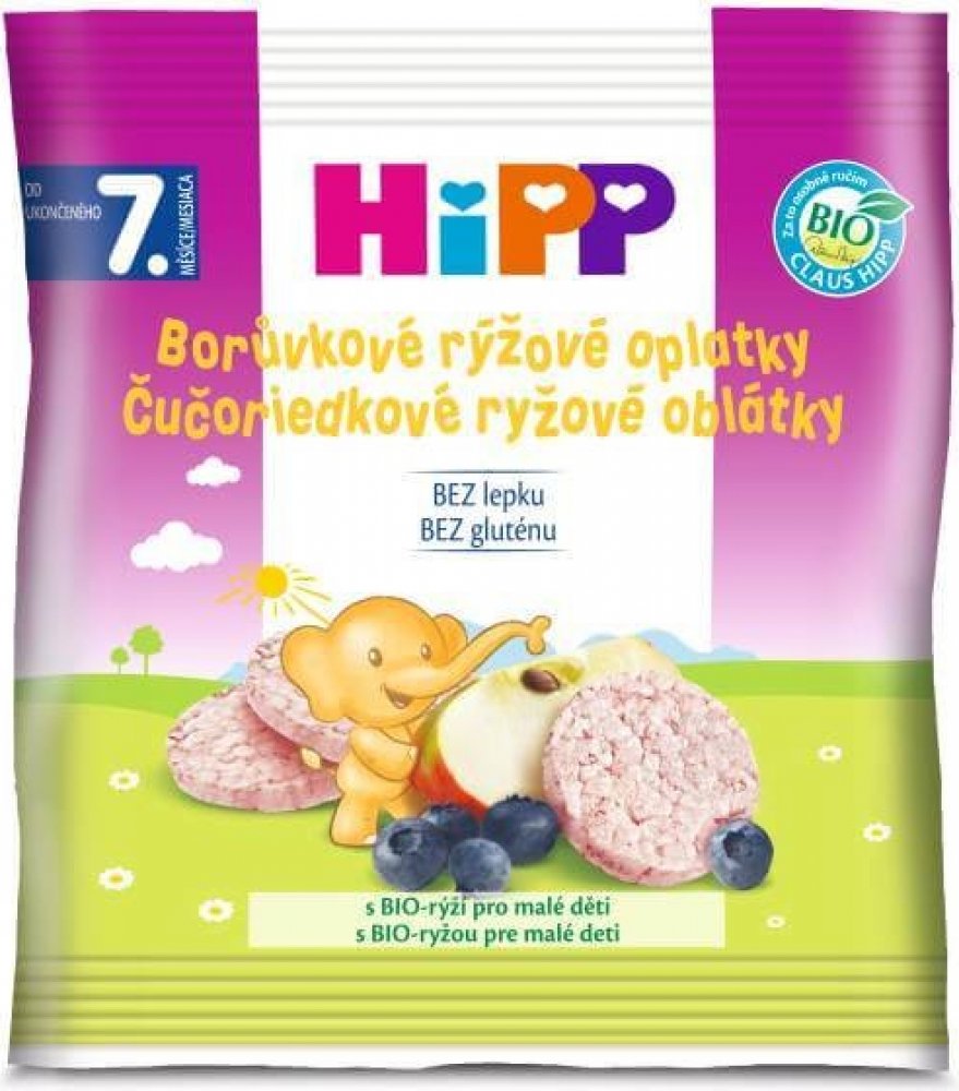 Lahodně ovocná svačinka. HiPP Borůvkové rýžové oplatky jsou vyrobeny z pufované BIO rýže a obsahují navíc BIO jablečnou šťávu a BIO borůvkové pyré. Jsou přirozeně jemné a zároveň mají lahodnou ovocnou příchuť. Jsou lehce stravitelné a zcela bez přídavku cukrů – jemně sladkou příchuť dodává BIO jablečná šťáva. Malý kulatý tvar je ideální pro dětské ruce – doma stejně jako na cestách.