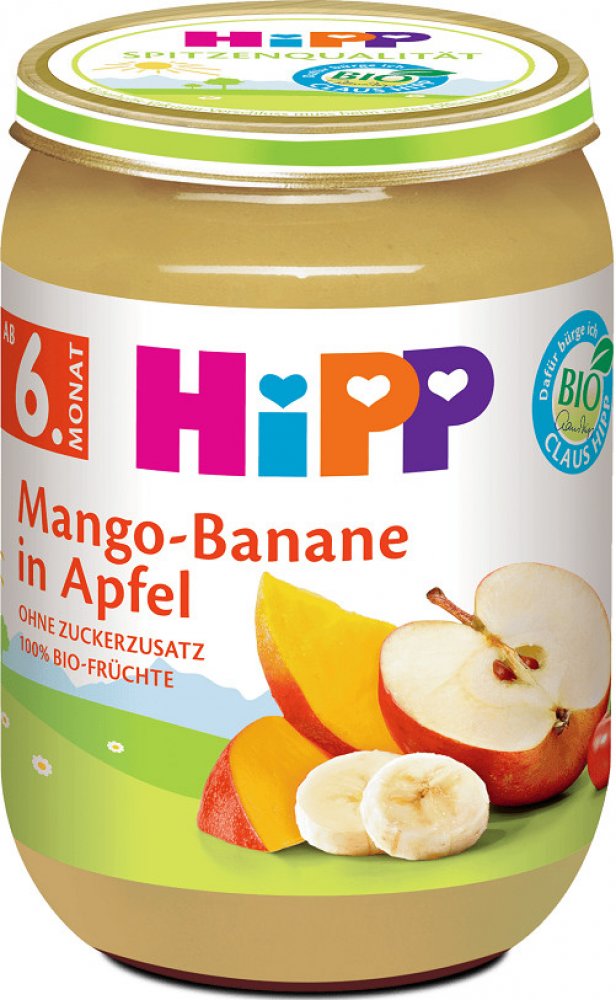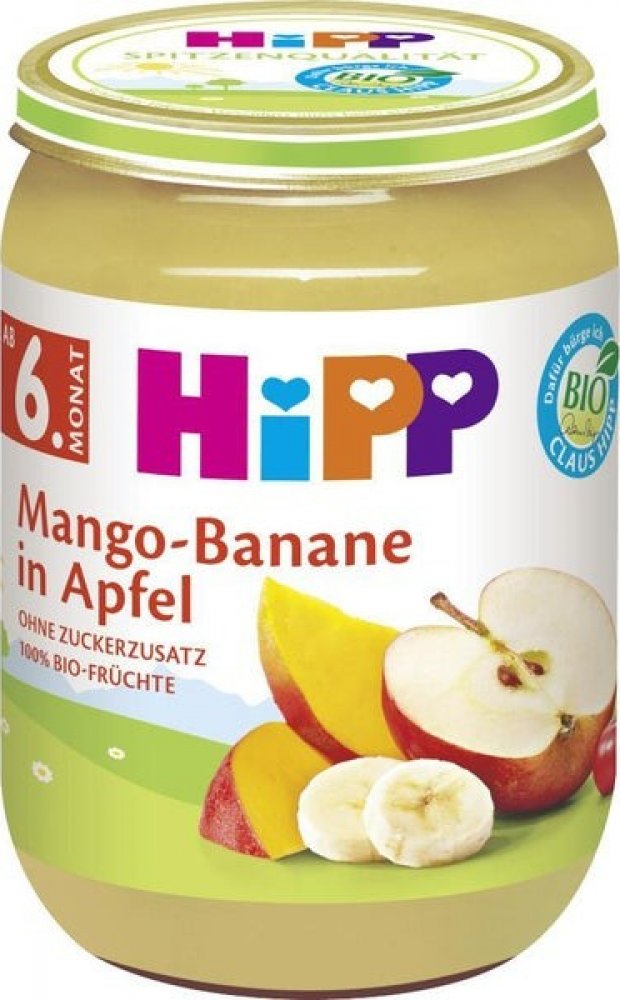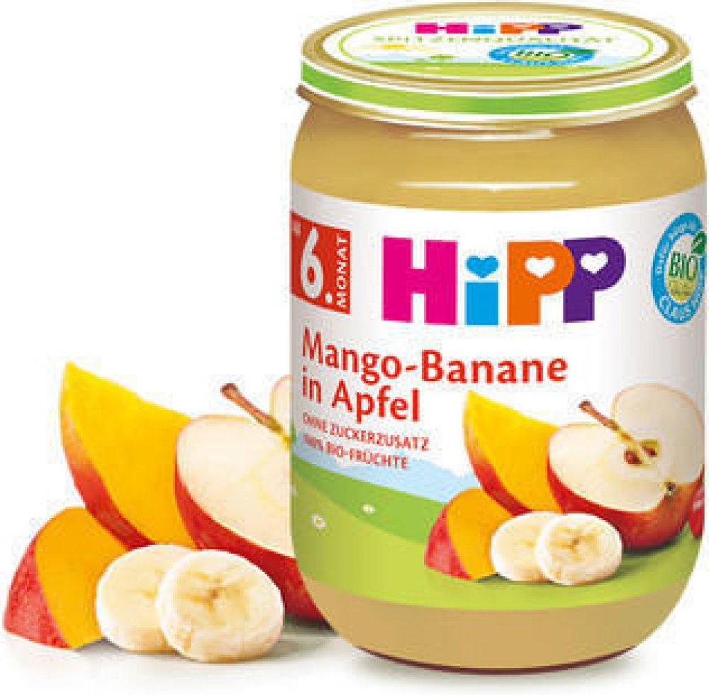 Výrobek obsahuje: ovoce 100 % (jablka 77%, mango 12%, banány 10%, acerola 1%).