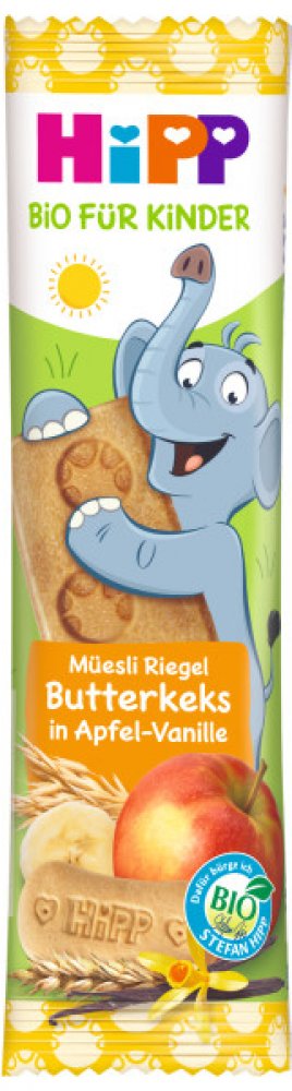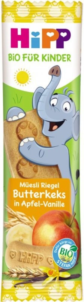 Müsli tyčinka HiPP – ovocná tyčinka pro děti od 1 roku s cennými živinami – bez přidaného cukru. Jemná ovocná chuť ve 2 lahodných variantách. Ovocná tyčinka HiPP je ideální jako svačinka, zvláště pokud jste mimo domov. Chutná i dospělým.