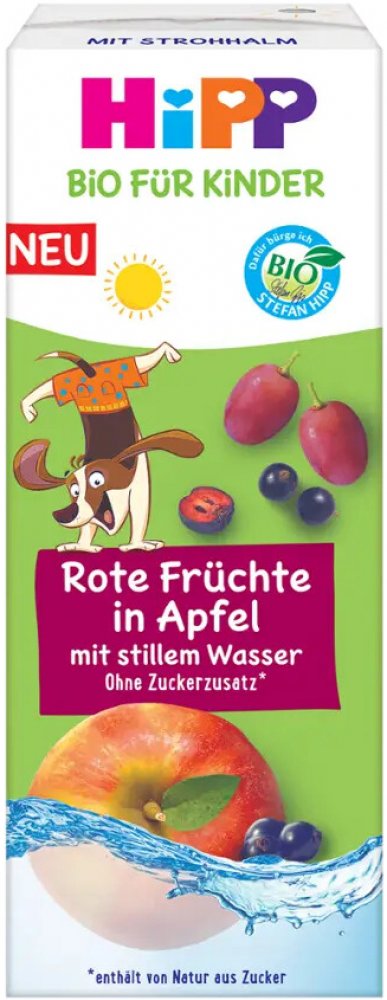 HiPP Bio nápoj jemné jablko a ovoce s neperlivou pramenitou vodou. Pečeť Bio kvality garantuje nejvyšší kvalitu a překračuje požadavky kladené EU na Bio produkty.