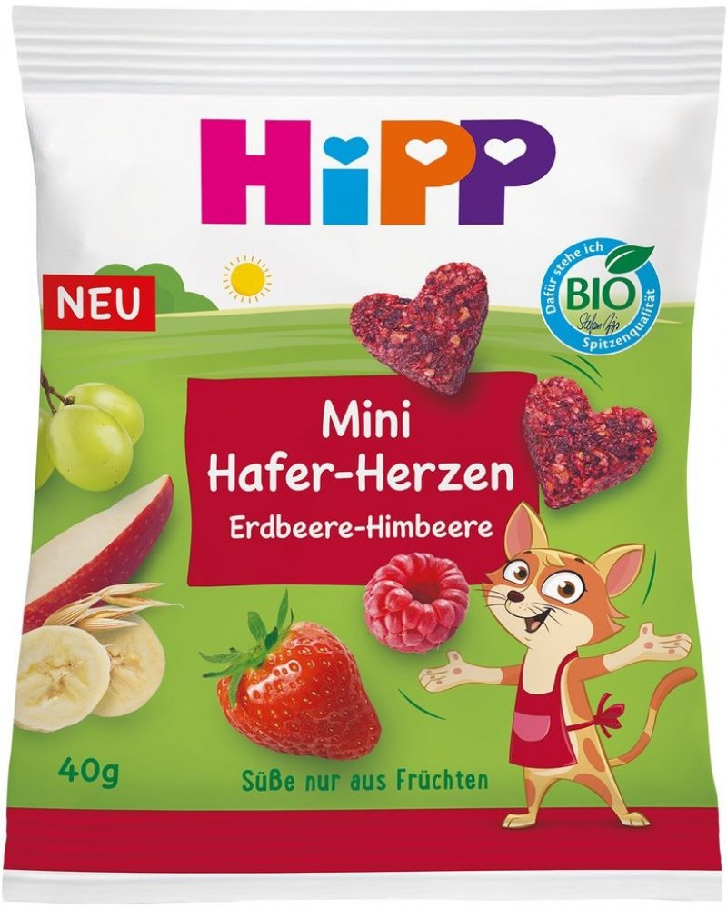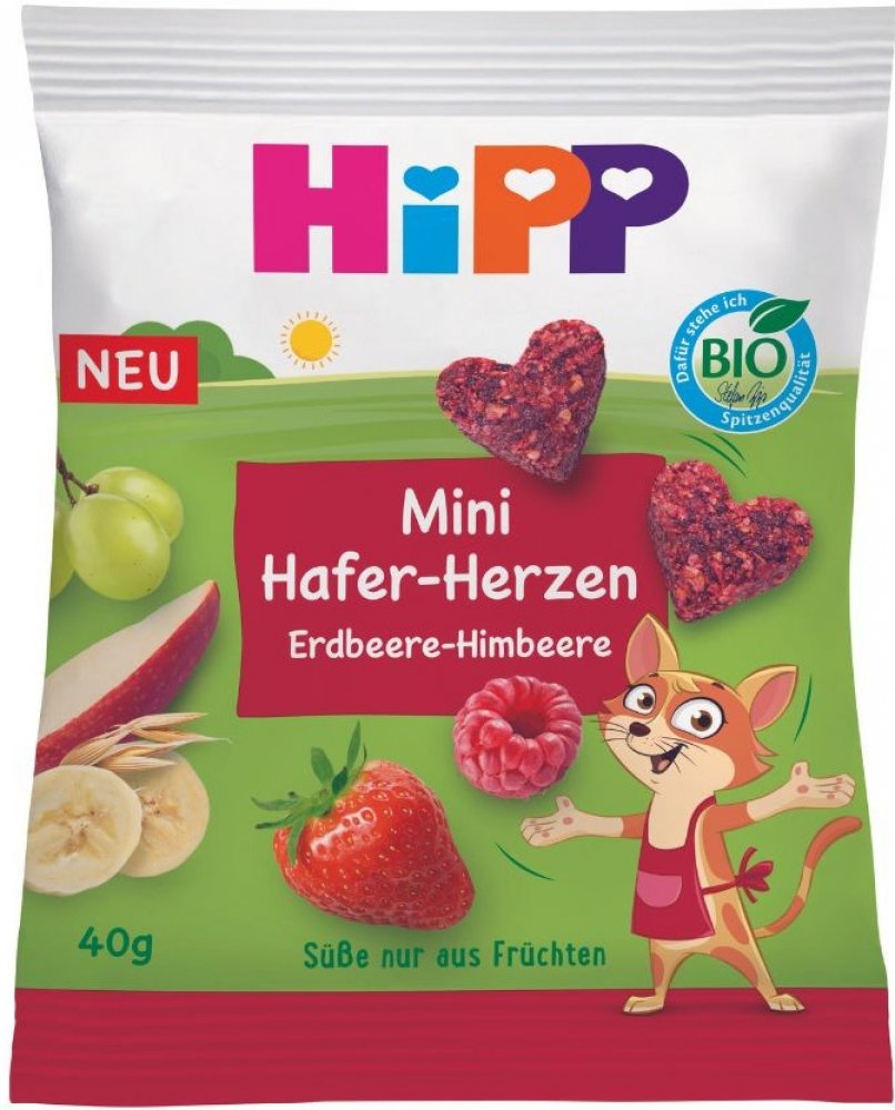 Každé dítě mezi hlavními jídly rádo mlsá. HiPP BIO Ovocno-obilná srdíčka představují díky lahodné ovocné chuti a vysokému obsahu ovesných vloček ideální svačinku. Kromě toho, že si váš malý mlsoun pochutná, určitě si oblíbí i HiPPis zvířátka.