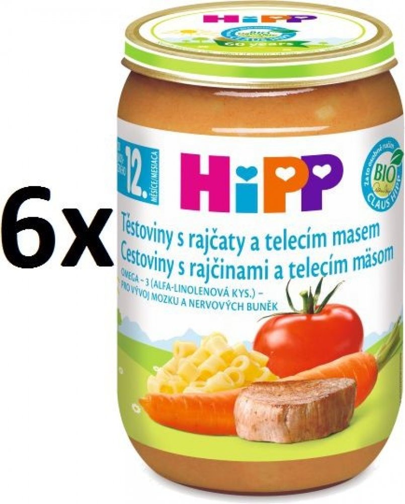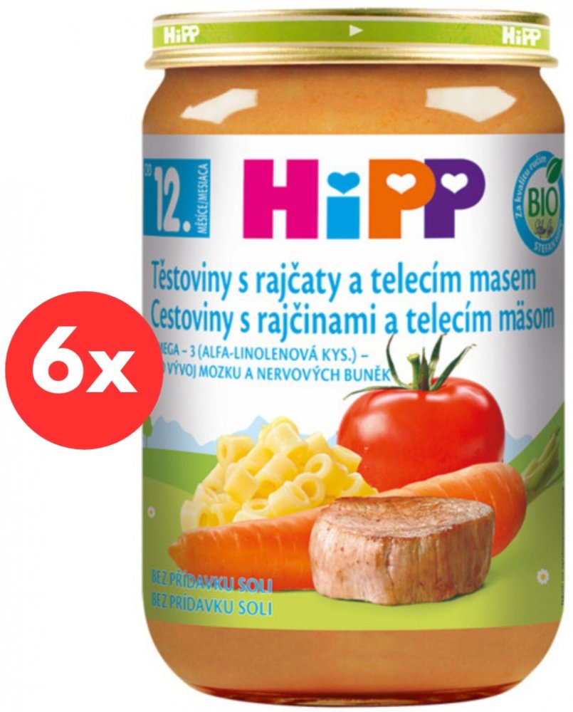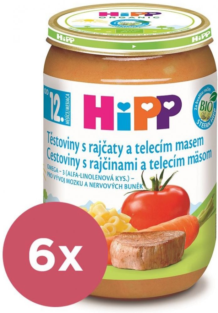 HiPP BIO Těstoviny s rajčaty a telecím masem 6 x 220 g