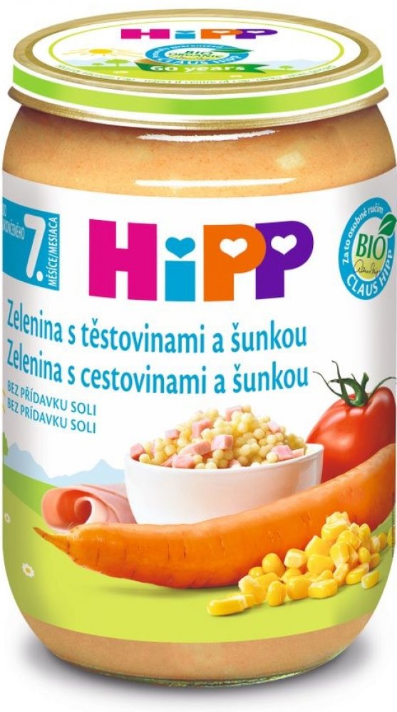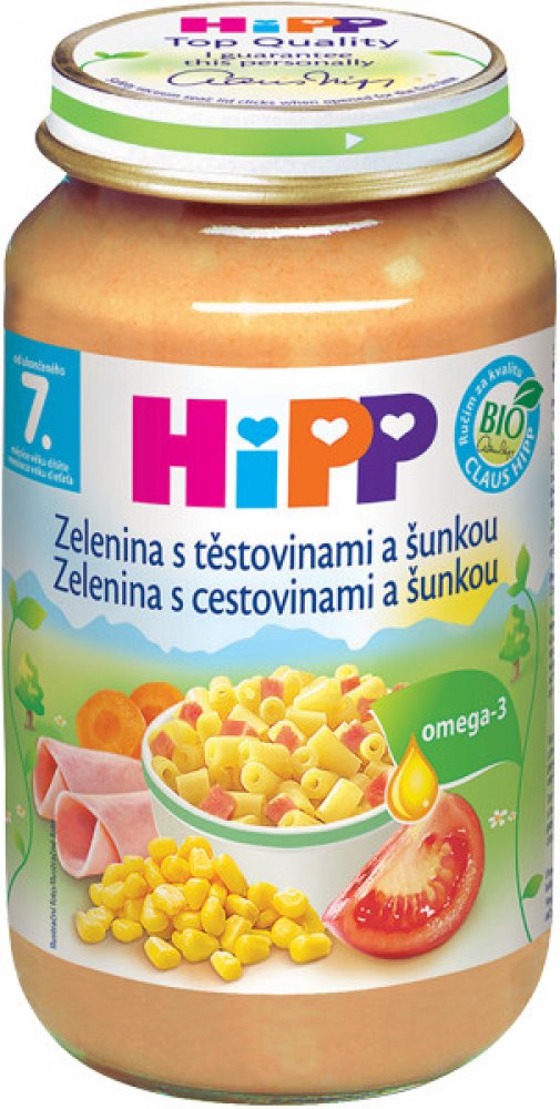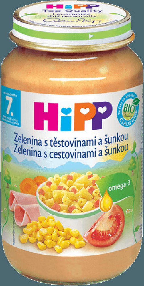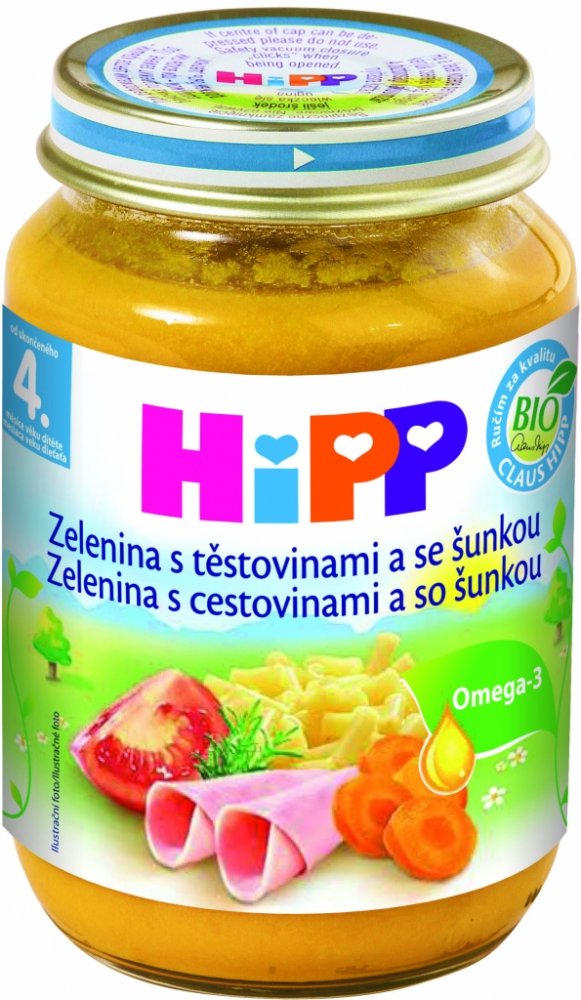 HiPP 220 g zeleninové s těstovinami a šunkou 8. měsíce masové HiPP ve sklenici
