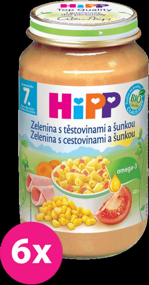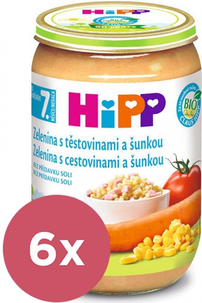 HiPP BIO Zelenina s těstovinami a šunkou 6 x 220 g