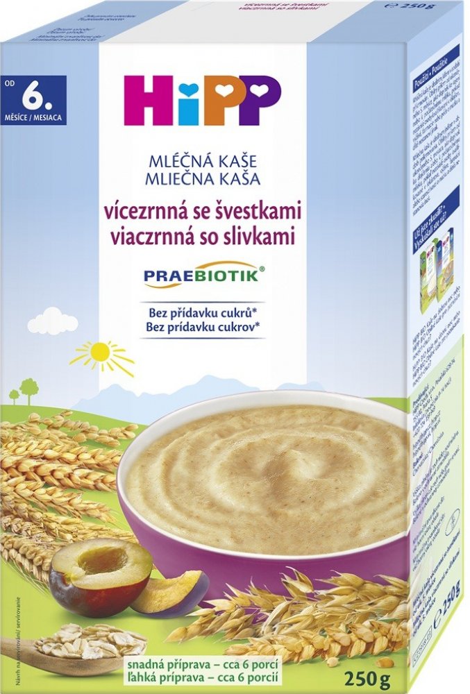 HiPP švestkové 250 g 6. měsíce vícezrnné HiPP mléčné