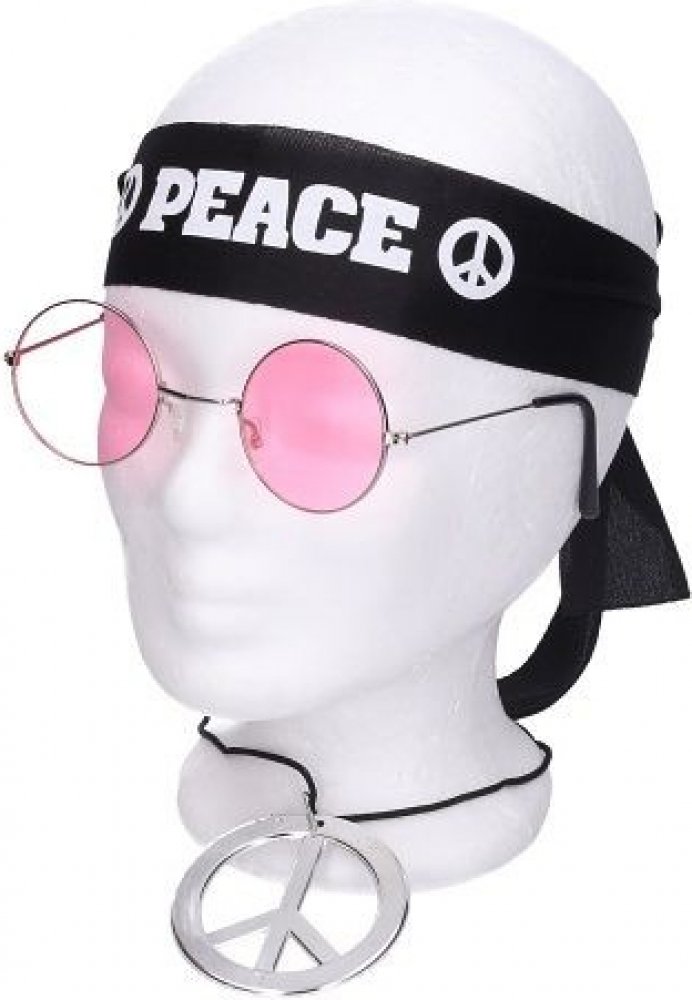 Retro párty a téma 80. let jsou velkým hitem a proto se Vám bude skvěle hodit tento set s ikonickými kulatými brýlemi a náhrdelník se znakem  Hippies.