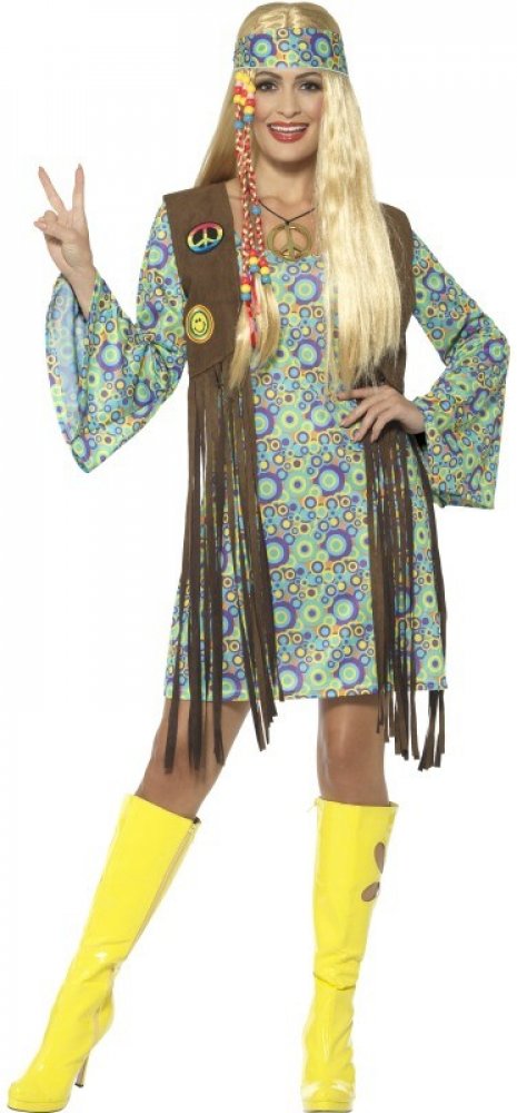 Kostým - Hipísačka - L Součástí kostýmu jsou šaty, vesta, medailon a čelenka.L - (44 -46) – Přes prsa : 102-107cm, V pase: 81-86cm, Boky : 108-113cm. V pondělí zboží objednáme z Anglie. V pátek to dorazí k nám do skladu a ihned ho posíláme k Vám.Nové zboží od července 2017.