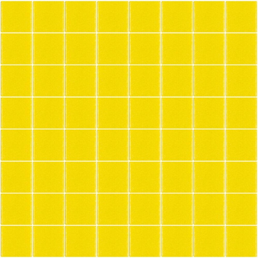 Skleněná mozaika žlutá 40302CLH s lesklým povrchem a čtvercovým tvarem jednotlivých prvků mozaiky.Tato mozaika se vyrábí lisováním rozemletého tabulového skla do jednotlivých dílků. Technologie výroby je prakticky stejná jako u keramické mozaiky, proto má skleněná mozaika Hisbalit stejné nebo lepší technické parametry jako keramická.