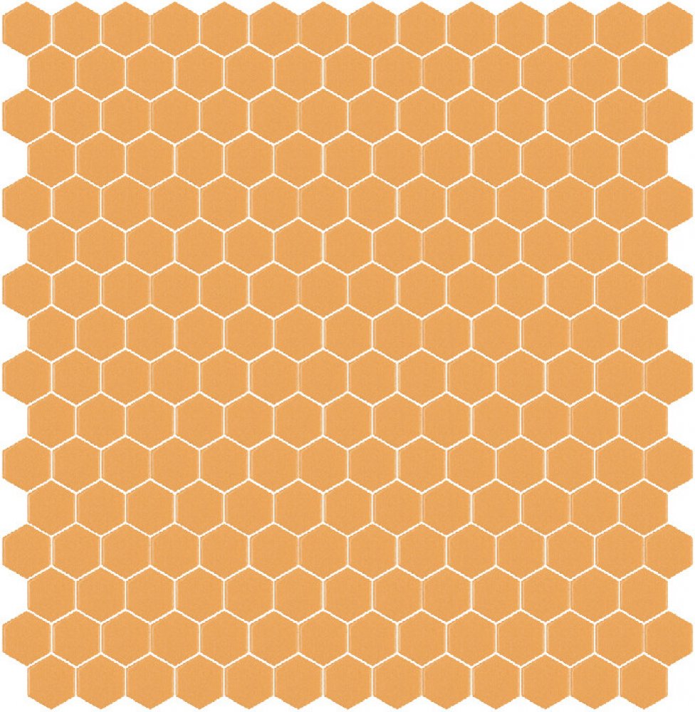 Skleněná mozaika oranžová HEX326BLH s lesklým povrchem a šestiúhelníkovým tvarem jednotlivých prvků mozaiky.Tato mozaika se vyrábí lisováním rozemletého tabulového skla do jednotlivých dílků. Technologie výroby je prakticky stejná jako u keramické mozaiky, proto má skleněná mozaika Hisbalit stejné nebo lepší technické parametry jako keramická.