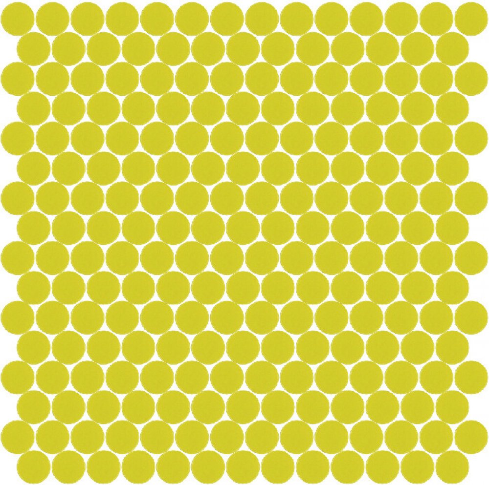 Skleněná mozaika žlutá KO301CLH s lesklým povrchem a ve tvaru koleček jednotlivých prvků mozaiky.Tato mozaika se vyrábí lisováním rozemletého tabulového skla do jednotlivých dílků. Technologie výroby je prakticky stejná jako u keramické mozaiky, proto má skleněná mozaika Hisbalit stejné nebo lepší technické parametry jako keramická.