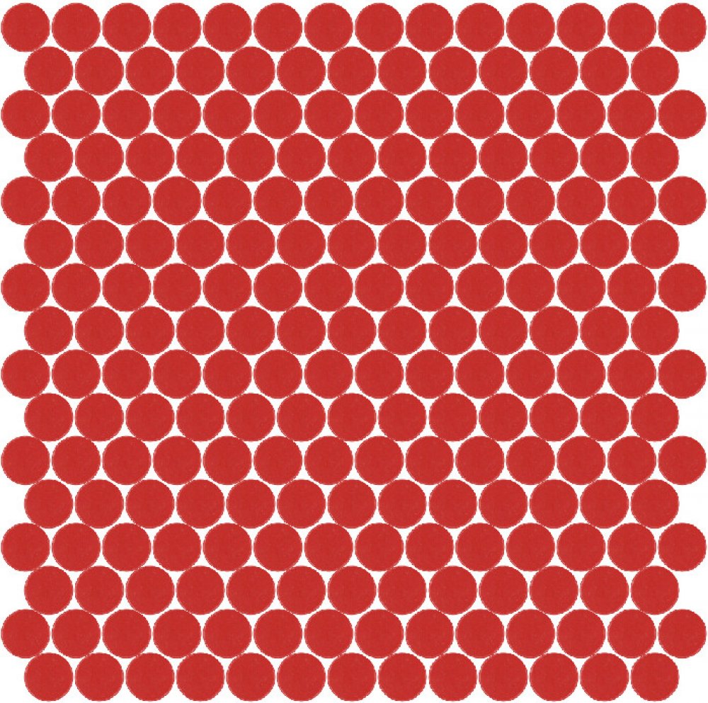 Skleněná mozaika červená KOL176FLH s lesklým povrchem a ve tvaru koleček jednotlivých prvků mozaiky.Tato mozaika se vyrábí lisováním rozemletého tabulového skla do jednotlivých dílků. Technologie výroby je prakticky stejná jako u keramické mozaiky, proto má skleněná mozaika Hisbalit stejné nebo lepší technické parametry jako keramická.