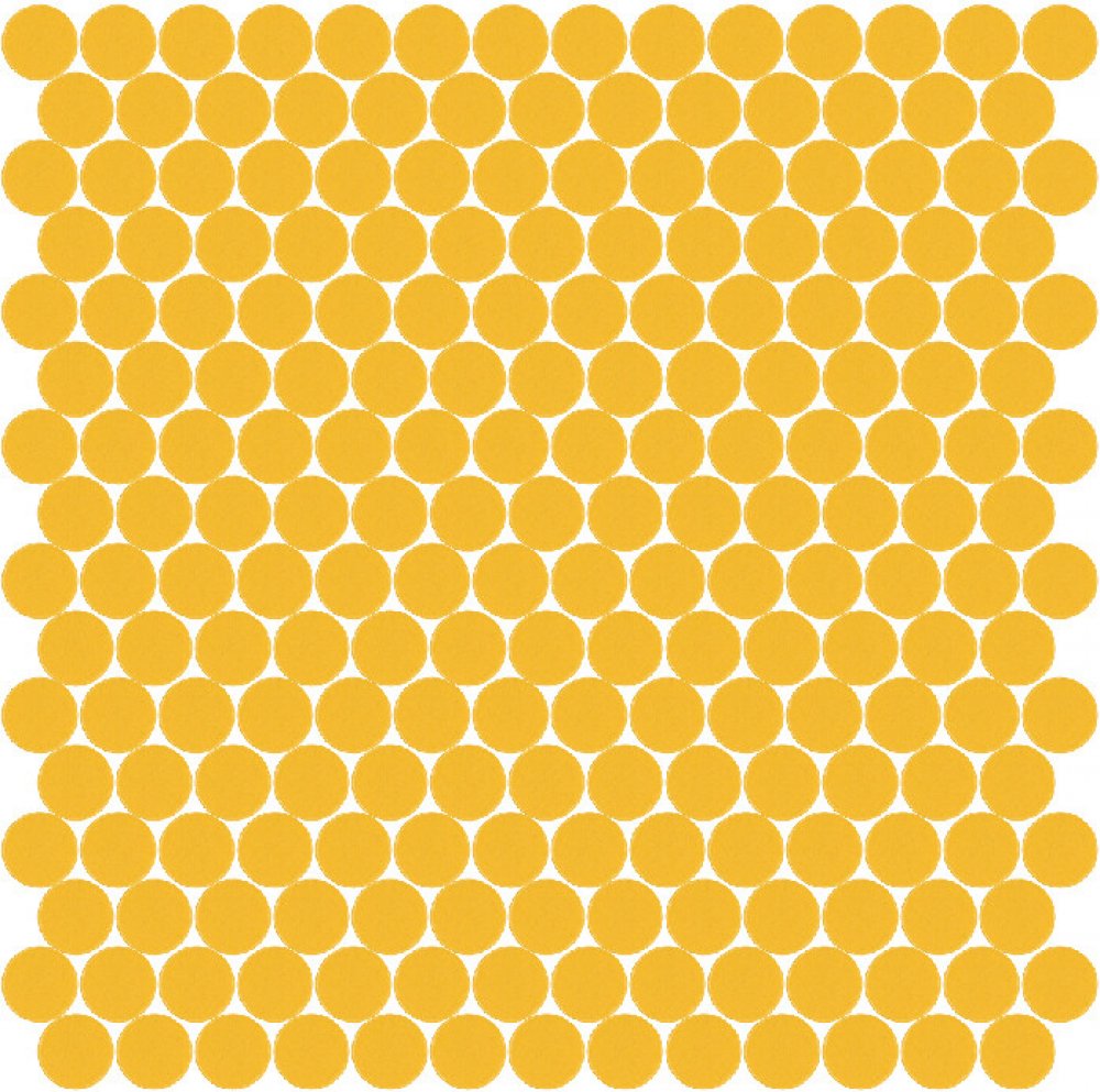 Skleněná mozaika žlutá KOL231ALH s lesklým povrchem a ve tvaru koleček jednotlivých prvků mozaiky.Tato mozaika se vyrábí lisováním rozemletého tabulového skla do jednotlivých dílků. Technologie výroby je prakticky stejná jako u keramické mozaiky, proto má skleněná mozaika Hisbalit stejné nebo lepší technické parametry jako keramická.