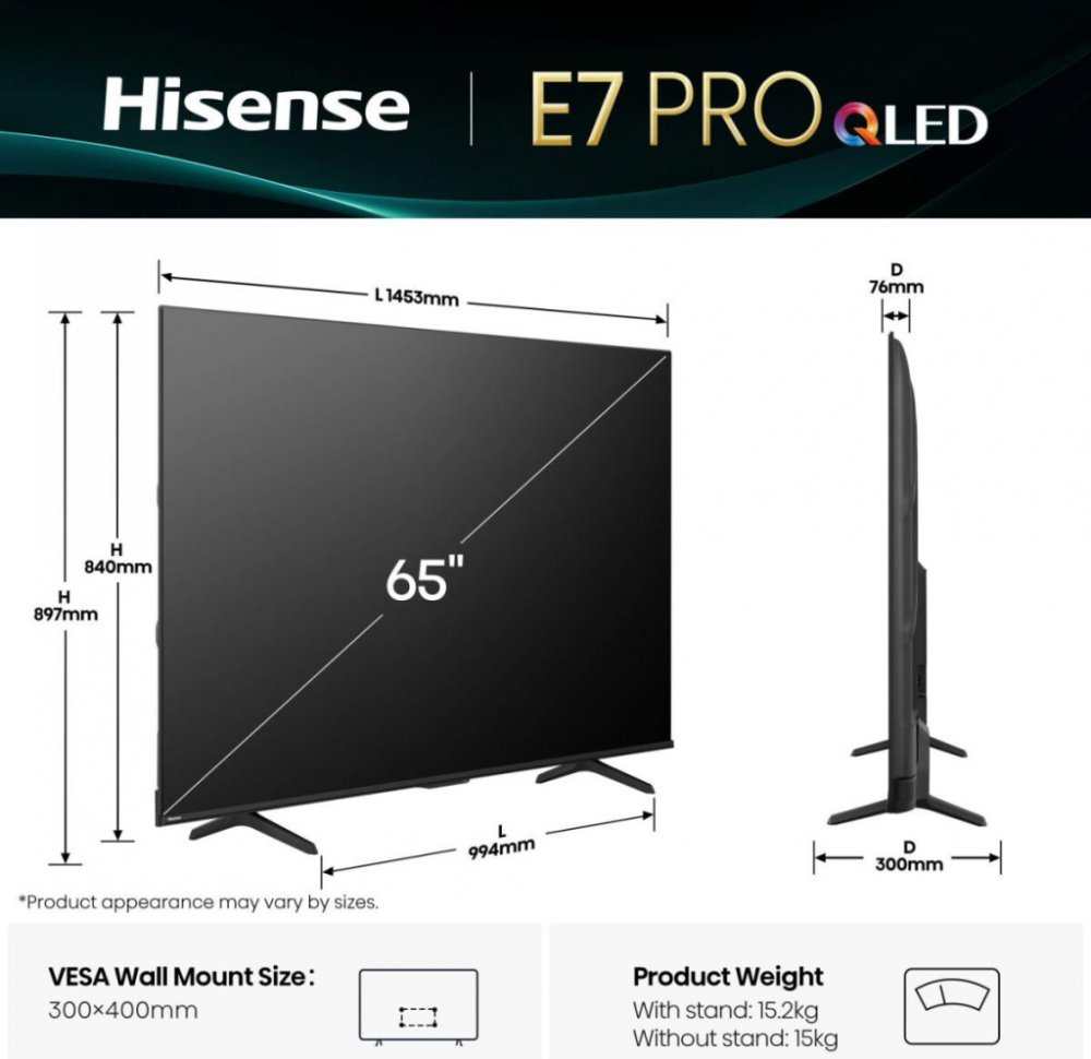 Hisense 65E77Q PRO – . Velká LED televize Hisense 65E77Q PRO – kategorie „LED televize: větší – 46″ (116 cm) a více“