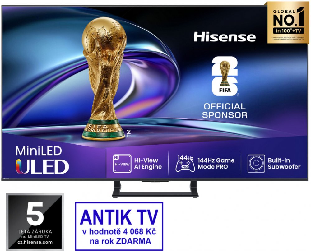 Hisense 164 cm Mini LED 65 palců VIDAA Smart OS 2025 Černá Dobré pro smíšené osvětlení 6.5 ms 3840 x 2160 16 : 9 144 Hz 144 2.0-3.5m optimální Silný HDR výkon Starší platforma (může zpomalovat) 4K HDR streamování připraveno 4 2 4 porty (4× plná rychlost 48Gbps) Snadná montáž (standardní VESA) 19.8 kg 400 x 400 Vyžaduje 125cm+ nábytek 144.6×83.6×7.6 E 160 kWh 84 kWh E 2220434 Prémiový vestavěný zvuk (Dolby Atmos)