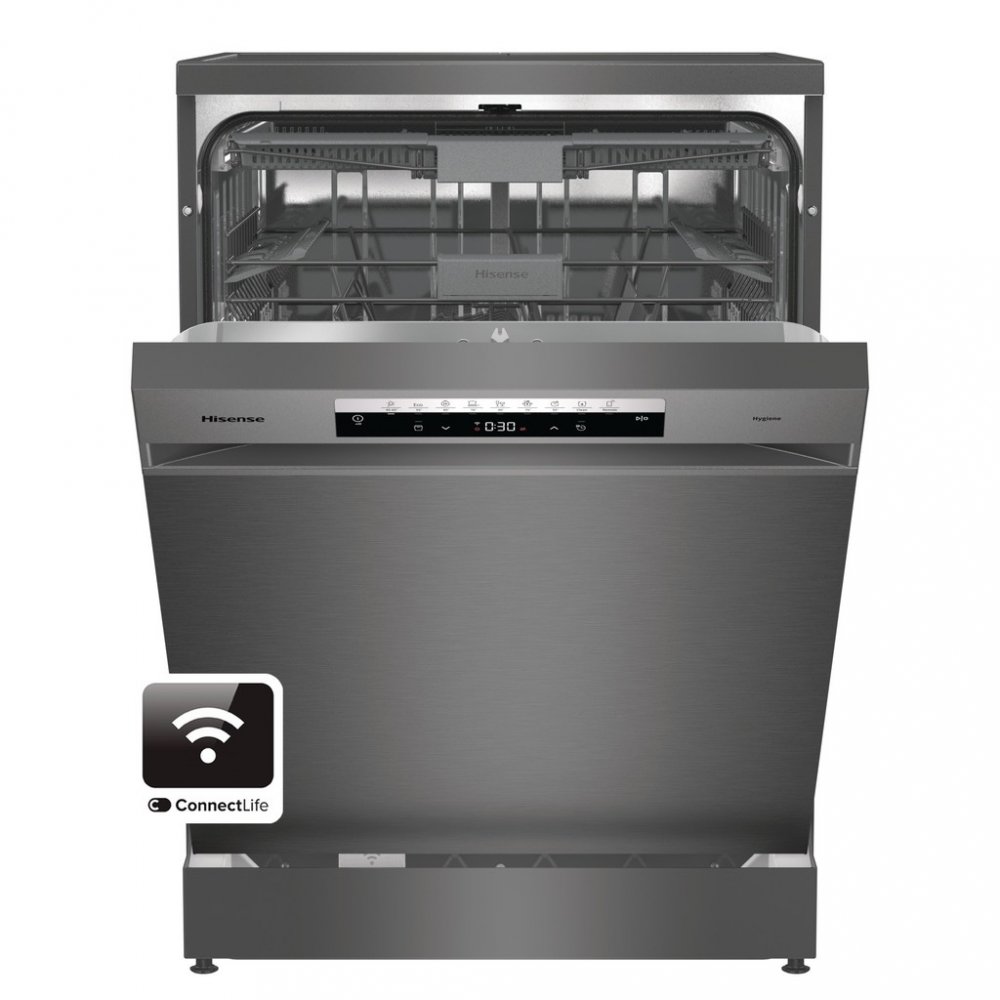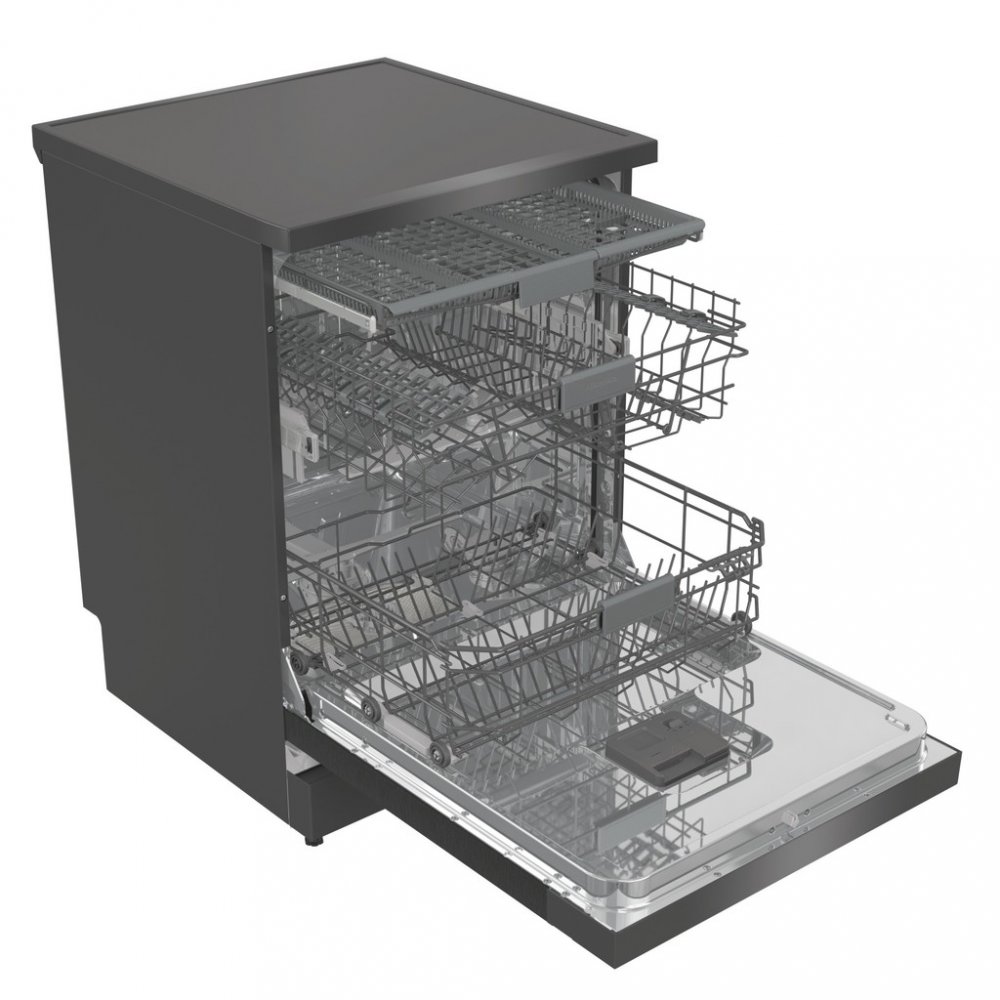 myčka nádobí • energetická třída B • kapacita 16 sad nádobí • hlučnost 40 dB • 7 programů • 3 flexibilní koše • 3 ostřikovací ramena • systém Auto Dry • samočisticí filtr • rychlý program • Eco program • program Hygiene • posuvný dávkovač mycích prostředků • systém Aqua Stop • funkce Odloženého startu • Wi-Fi připojení • dotykové ovládání • 84,6×59,9×59,8 cm