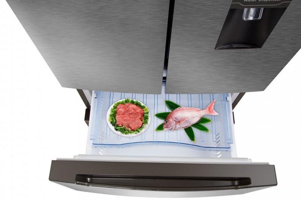 Ve spodní části se nachází multifunkční zásuvka, ve které můžete nastavit teplotu na 0, 3 nebo na 5 °C. Při nastavení na 0 °C výrazně prodloužíte čerstvost m Americká chladnička French Door, energetická třída A+