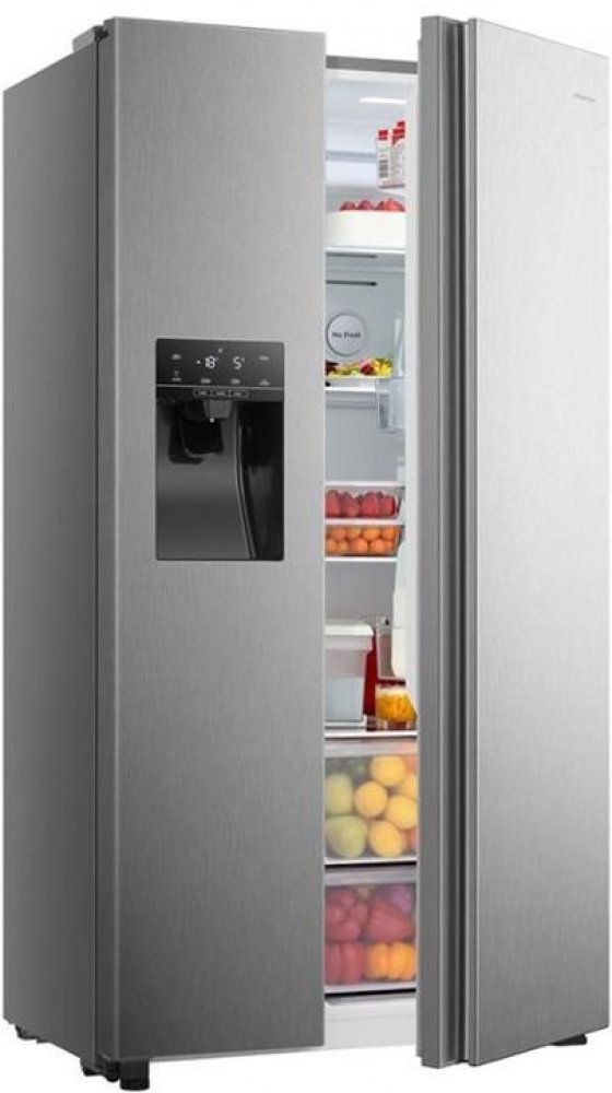 Americká chladnička v nerezové barvě v energetické třídě E. Vnitřní objem chladničky je 334 litrů a mrazák má 165 litrů. Je vybavena technologií Total No Frost. Vnitřní výbavu chladicí části tvoří LED osvětlení. Mrazicí kapacita dosahuje 11 kg/24 hod a akumulační doba v případě výpadku proudu je 6 hodin. Multi Air Flow - rovnoměrná distribuce vzduchu. Super Cool - sníží teplotu o 2 stupně po dobu 6 hodin. Dveřní alarm - zvuková signalizace vás upozorní na otevřené dveře. Stojan na lahve. Funkce Holiday - uchová potraviny během vaší dovolené. Super Freeze - rychlé zmrazení. Invertorový kompresor - zajišťuje tichý a úsporný chod.Zásobník na vodu bez připojení na vodovodní síť