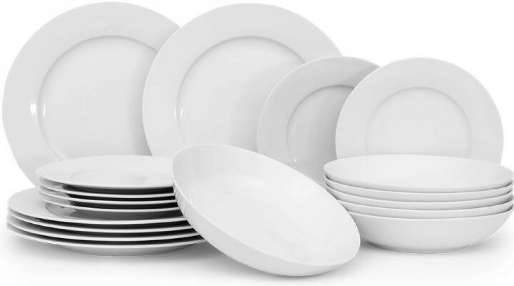 HIT HT-27020392 Jídelní sada talířů bílá 18 ks