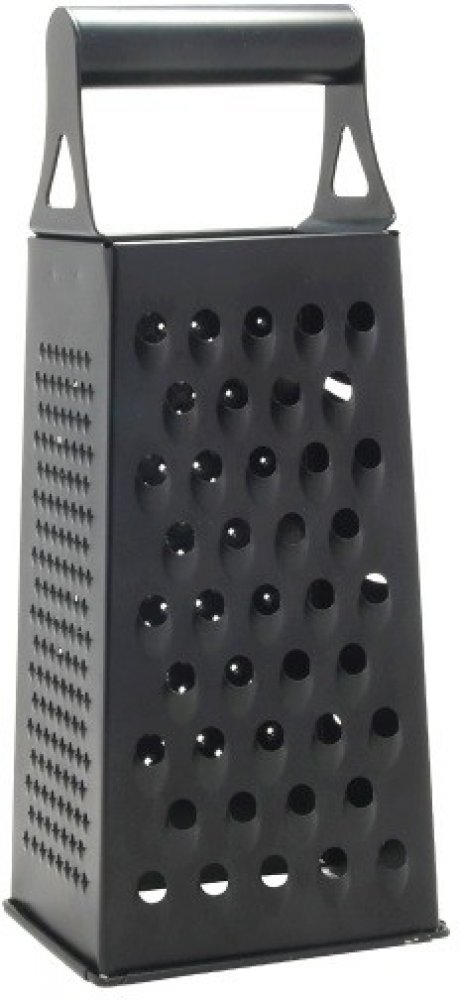 Černé kuchyňské struhadlo 4stranné s rukojetí 24 cm. 4stranné struhadlo se 3 různými hrubostmi a plátkovačem. Struhadlo má robustní rukojeť a protiskluzové dno pro dobré držení. Vhodné pro ovoce a zeleninu, ale také pro tvrdší potraviny, jako je čokoláda nebo sýry.Materiál: nerezová ocelBarva: ČernáDélka: 11 cmŠířka: 8 cmVýška: 24 cm