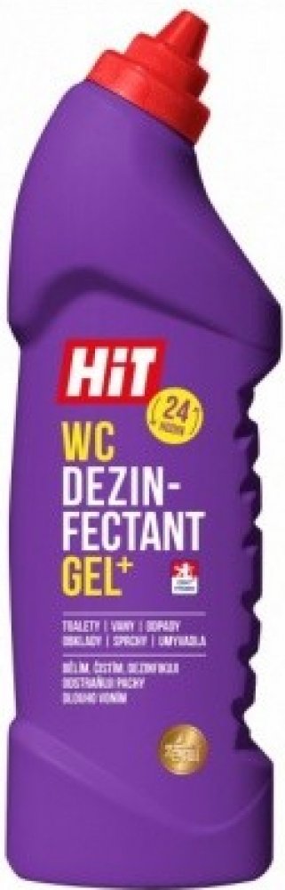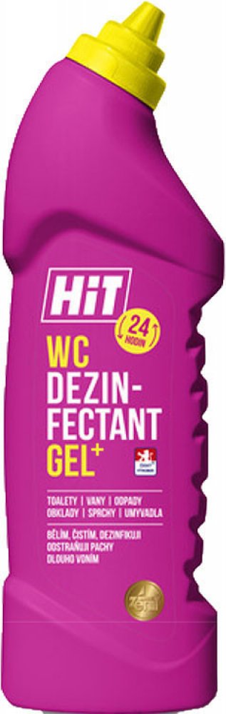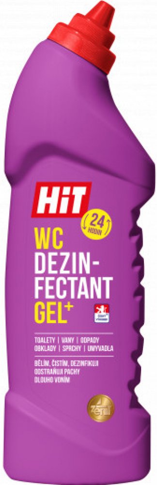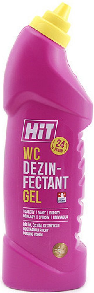HIT WC GEL - čisticí prostředek s mycím, dezinfekčním a bělicím účinkem. Kombinace dezinfekční složky a povrchově aktivních látek zvyšuje smáčecí schopnosti, tím zaručuje vynikající mycí i dezinfekční vlastnosti. Odstraňuje mastnotu, odolnou špínu, usazeniny, pachy a další druhy nečistot. Fantazijní vůně s divokou růží. Vhodný na všechny omyvatelné plochy v celé domácnosti. Používá se v ředěném i neředěném stavu. Neředěný - WC mísy, odpady, výlevky; ředěný: podlahy, obklady, dlažby, umyvadla, vany, spáry, pracovní plochy, dřezy a další omyvatelné plochy. Lze použít i v potravinářských provozech. Fantazijní vůně s divokou růží. Dávkování: Neředěný aplikujte na čištěný povrch a nechte 5 minut působit. Čištění odpadu: nalijte do odpadu 1 lahve, opláchněte výlevku, nechte působit 2 hodiny, v případě silnějších usazenin prodlužte dobu působení na 8 hodin (nebo přes noc). Spláchněte horkou vodou. Používejte biocidy bezpečným způsobem. Před použitím si vždy přečtěte označení a informace o přípravku.
