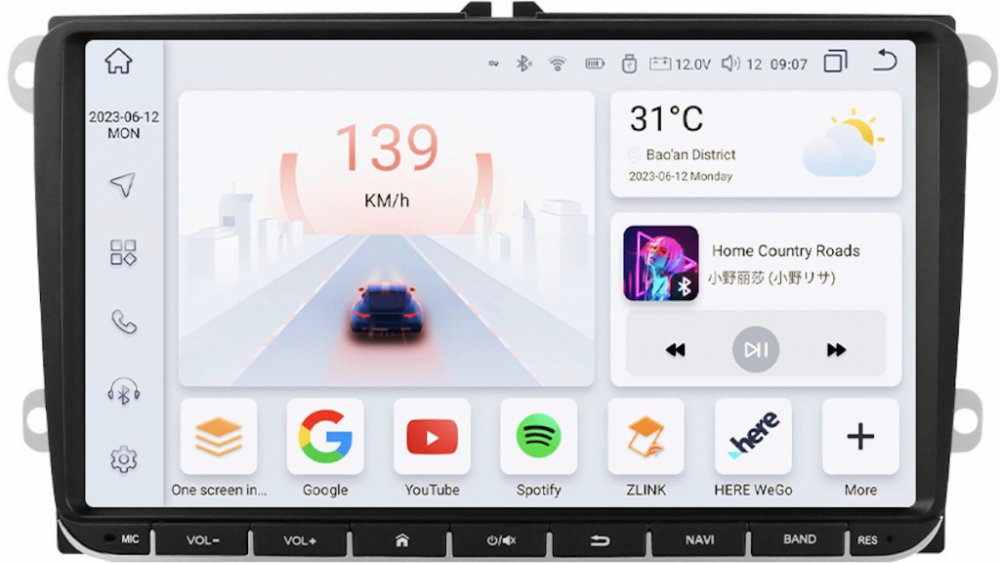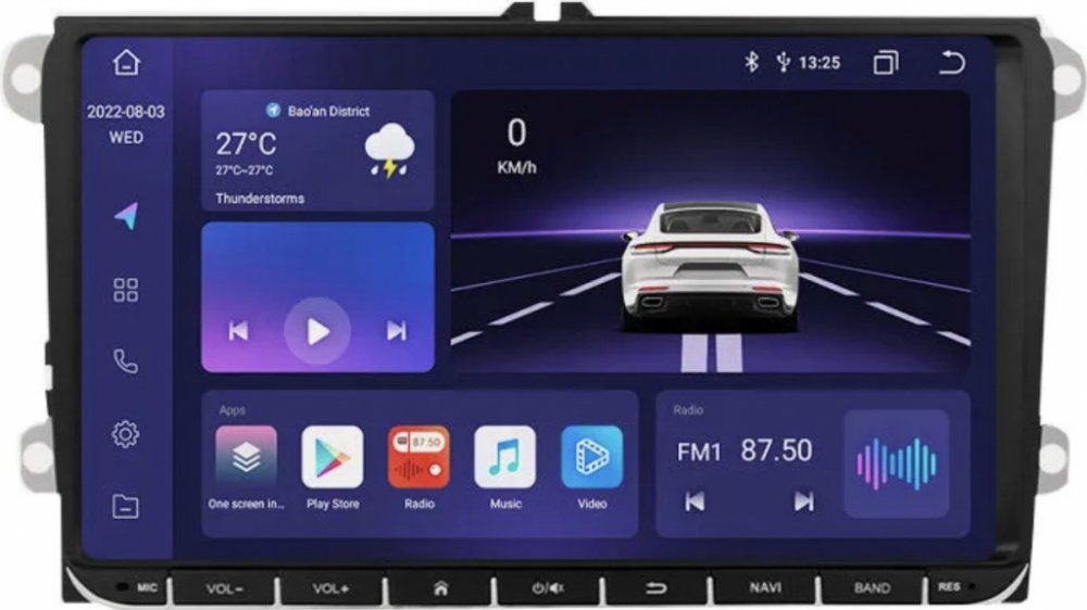 Displej autorádia zaujme velkou úhlopříčkou 9 palců a rozlišením 1024 × 600 px, díky kterému je obraz ostrý, přehledný a plný detailů. Dotyková plocha reaguje plynule a přesně, takže ovládání funkcí, aplikací i nastavení je intuitivní a pohodlné i během jízdy. Velký formát displeje navíc zajišťuje výbornou čitelnost navigace, multimédií i dalších informací na první pohled.