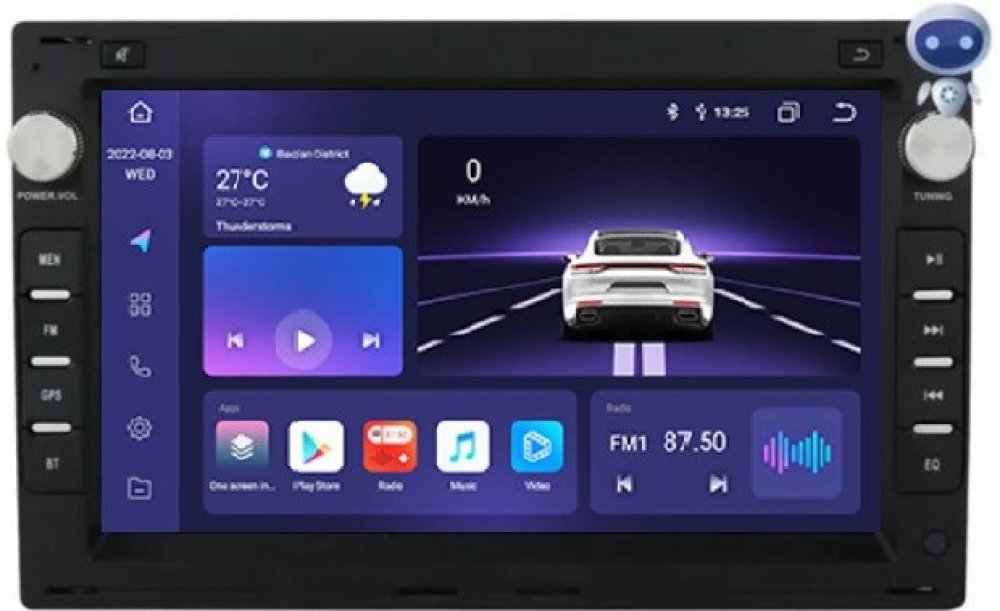 Moderní 2DIN autorádio s velkým 7" dotykovým displejem a systémem Android 14 přináší pohodlné a chytré ovládání během jízdy. Bezdrátové Apple CarPlay a Android Auto umožňují snadné propojení s telefonem a rychlý přístup k navigaci, hudbě i aplikacím. Díky Bluetooth lze bezpečně telefonovat handsfree a streamovat hudbu. Vestavěný GPS modul spolu s Obchodem Play umožňuje instalaci navigací jako Waze...