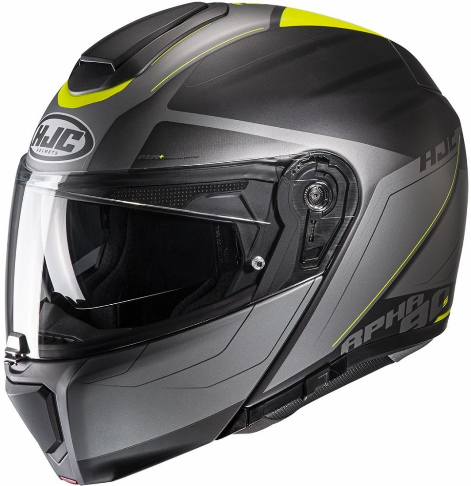 HJC RPHA 90S je řada prémiových výklopných přileb se sportovním vzhledem. Přilba má dvojí homologaci P/J pro jízdu s vyklopenou bradou. Je vybavená sluneční clonou, která zajistí, aby přechody ze světla do šera příliš neunavovaly oči. Clona je navíc z obou stran ošetřena protimlžící vrstvou a její ovládání je umístěno na snadno přístupné spodní straně přilby.