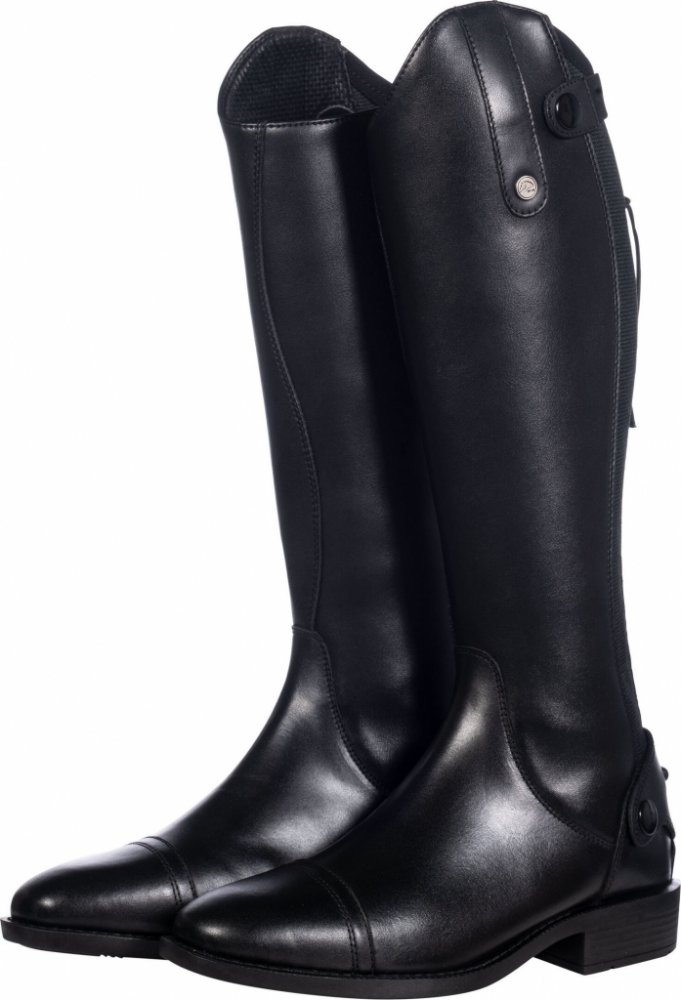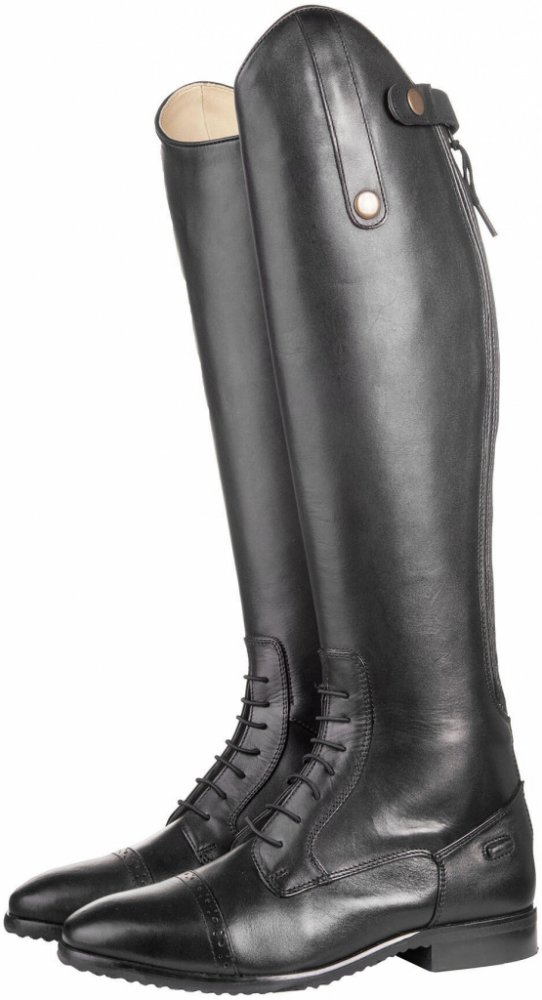 Vysoké boty HKM Valencia jsou kvalitní boty nejen vzhledem, ale zajišťují i maximální pohodlí. Jsou vyrobeny z kvalitní kůže a vnitřní část je ze syntetického materiálu. Vpředu mají šněrování a vzadu mají po celé délce zapínání na zip, který je zajištěn drukem. Podél zipu je elastická vložka, díky které se bota dokonale přizpůsobí. Kožené jezdecké boty Vzadu zapínání na zip, který je zajištěn drukem Elastiká vložka pro dokonalé přizpůsobení Vpředu šněrování Protiskluzová gumová podrážka s podpatkemSložení materiálu: Pravá kvalitní kůže, syntetická podrážka Vnitřní část: syntetický materiál