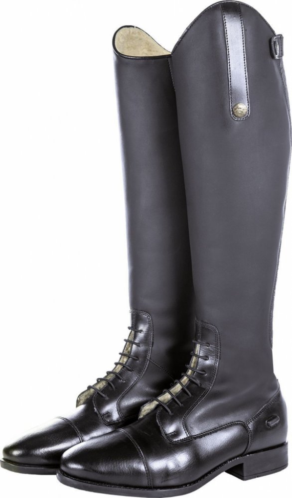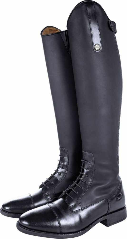 Vysoce kvalitní jezdecké boty, spodní část vyrobena z hovězí kůže, holeň je z polyuretanu. Uvnitř jsou měkce vypodloženy pro maximální pohodlí. Opatřeny předním šněrováním a zapínáním na zip po celé zadní straně, který je jištěn nahoře drukem. Kolem zipu se nachází elastický díl, který zajišťuje dokonalé přizpůsobení. Vybaveny zarážkami na šporny. Vhodné pro širokou holeň se standardní výškou.