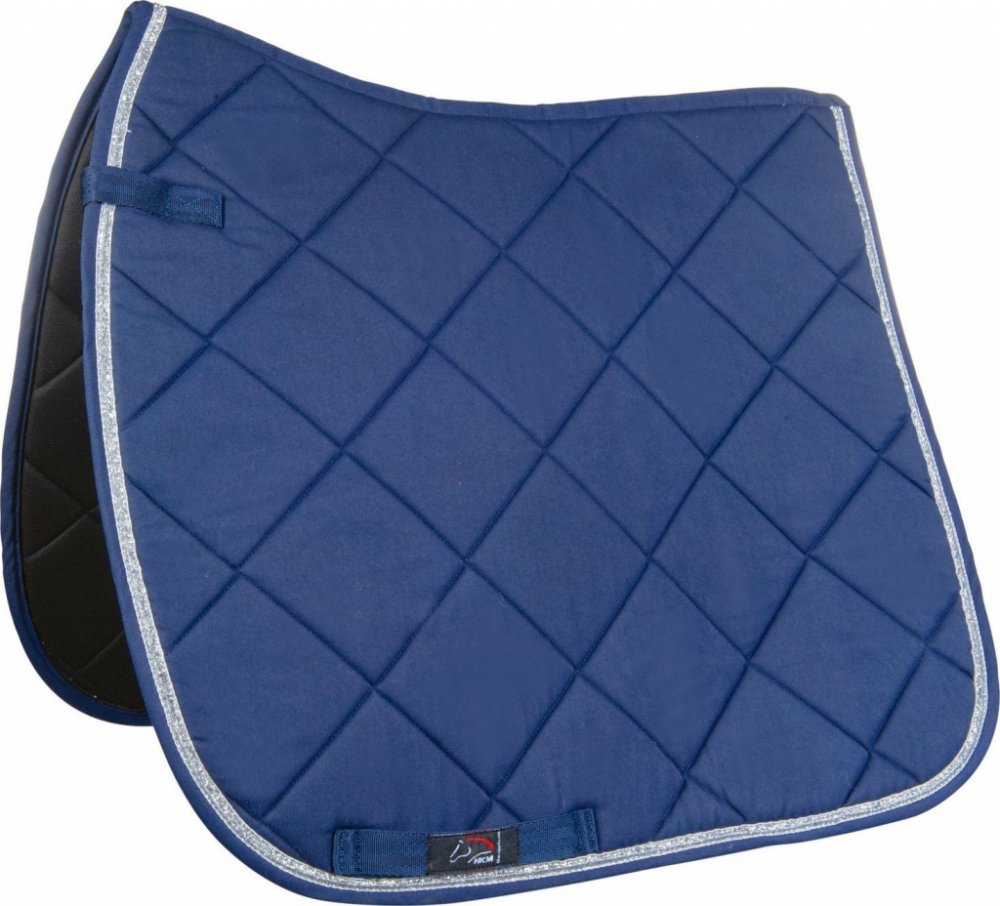 Kvalitní podsedlová dečka značky HKM, anatomicky tvarovaná. Dečka je zdobena třpytkami po obvodu, jeví se tak elegantním dojmem. Je vybavena řemínky na suchý zip pro snadné připevnění k sedlu. Výplň zajišťuje vysoký komfort. Dostupná je ve všestranném a drezurním provedení. Dokonale ladí s kolekcí Romy HKM.
