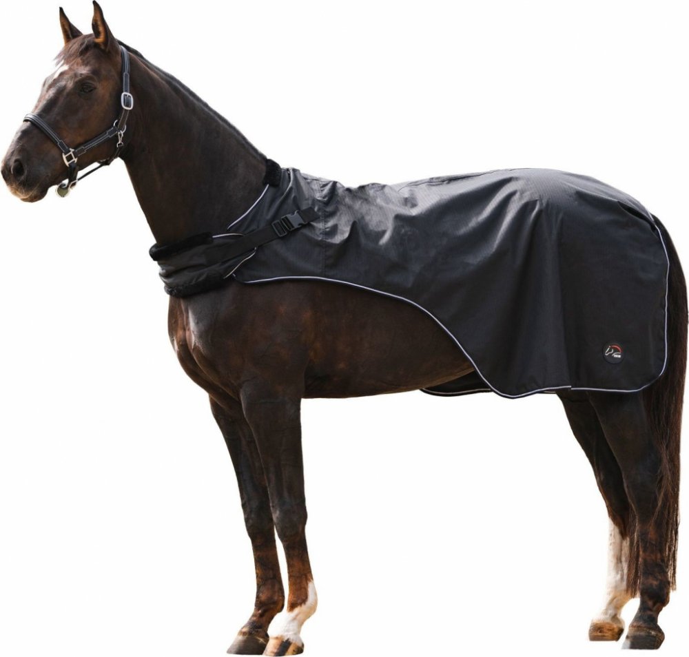 Velmi kvalitní pracovní deka s podšívkou z polar fleecu. Vyrobena z pevného polyesteru, nepromokavého, větruodolného a zároveň prodyšného materiálu. Vybavena nastavitelným jednoduchým předním zapínáním a popruhem pod ocasem. Opatřena měkkým polstrováním na kohoutku a na zapínání. Lze ji prát v pračce na 30 stupňů a sušit v sušičce. K dispozici v černé barvě. Ve velikostech 125 - 165 cm.