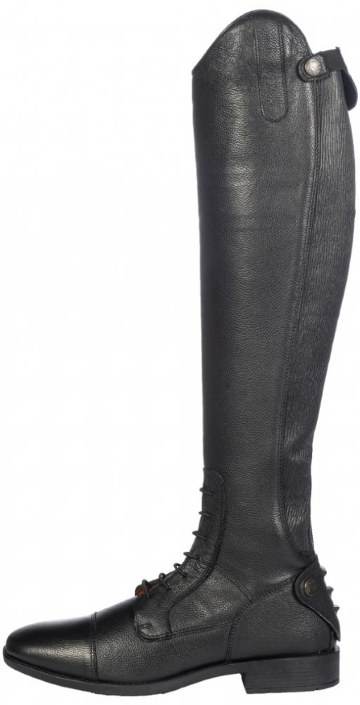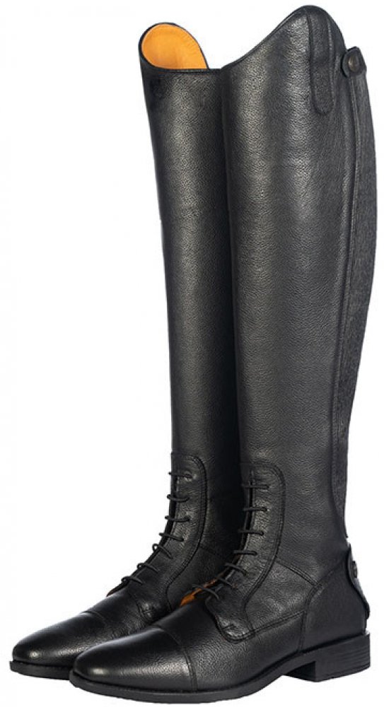 Vysoce kvalitní jezdecké boty s nízkou holení a širsím obvodem. svršek z hovězí kůže podšívka: teletina paměťová pěnová stélka extra měkká podšívka patentová pojistka opěra šporen extra robustní zip elastické šněrování elastická vložka na vnější straně pro dokonalé přizpůsobení syntetická podrážka robustní a měkká kůže pro optimální pohodlí super štíhlý vzhled vnitřní podšívka se silikonovým potis...