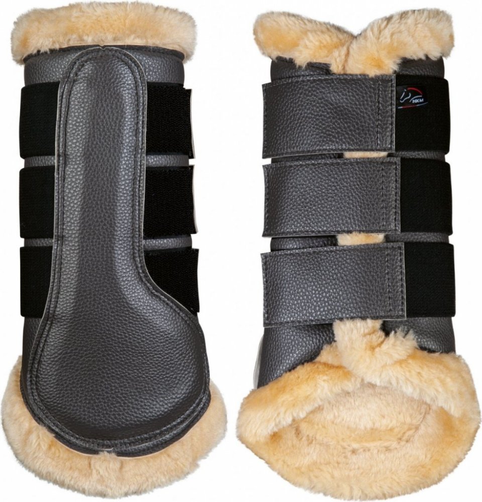 Drezurní kamaše lemované syntetickým měkkým beránkem. Opatřeny jsou zapínáním na suchý zip, který je široký cca 5 cm. Chrání nohy koně před nárazy a dalším zraněním. Kamaše jsou vhodné na přední i zadní nohy. Dodáváno v páru.
