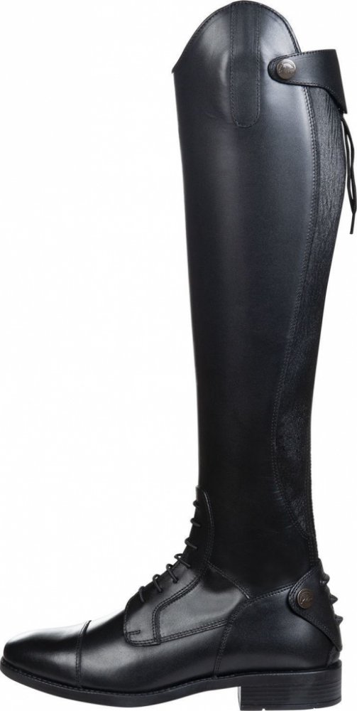 Vysoce kvalitní jezdecké boty s extra štíhlým vzhledem. Vyrobeny z hovězí kůže. Stélka z paměťové pěny a extra měkká podšívka zajišťují maximální pohodlí. Opatřeny zapínáním na zip po celé zadní straně, který je jištěn drukem nahoře i dole. Kolem zipu se nachází elastický díl, který zajišťuje dokonalé přizpůsobení. Vybaveny prošitou podrážkou, elastickým šněrováním a zarážkami na šporny, které je ...
