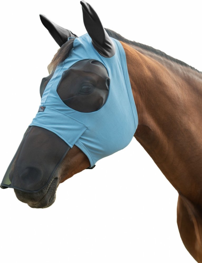 Elastická maska proti hmyzu s ochranou očí, uší a nozder. Vyrobena je z měkkého síťového materiálu. Uši jsou elastické a prodyšné. Díky použitému materiálu se perfektně přizpůsobí tvaru koňské hlavy. Zapínání pomocí zipu podél spodní čelisti s měkkým polstrováním. Zapínání je navíc jištěno drukem. Maska má UV ochranu - SPF 30.