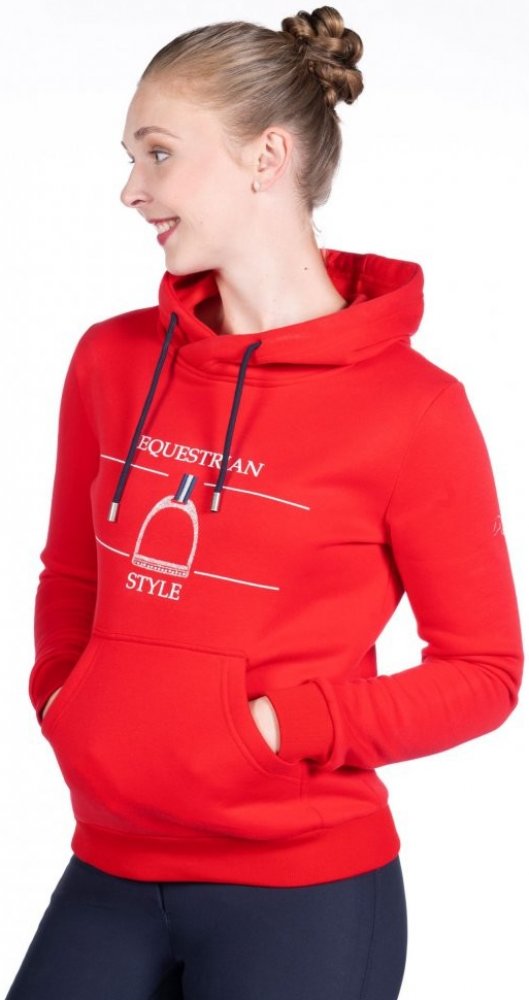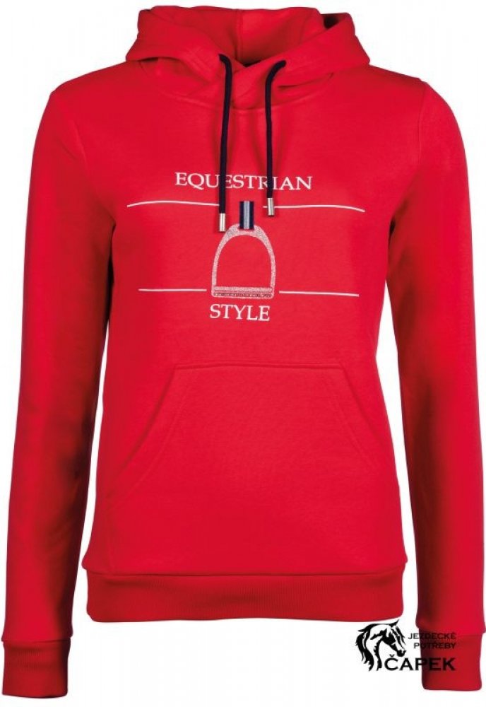 Líbivá bavlněná mikina s kapucí z kolekce Equine Sports kombinující červenou a tmavě modrou barvu. počesaný vnitřní materiál s kapucí třpytivý motiv třmenu pohodlná volnější střih materiál: 60% bavlna, 40% polyester Zákazníci hledají také: jezdecká mikina, mikina ke koním, mikina na koně