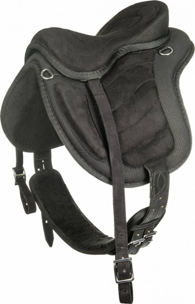 Dětské bezkostrové sedlo dodávané s podbřišníkem a třmenovými řemeny. Sedlo je velmi lehké, vyrobeno z umělé kůže. Zápinky na podbřišník jsou vyrobeny z kůže. Vybaveno kolenními opěrkami. Opatřeno kováním z nerezové oceli. Podbřišník je potažen umělým beránkem. K dispozici v černé barvě. Velikost SHETTY.