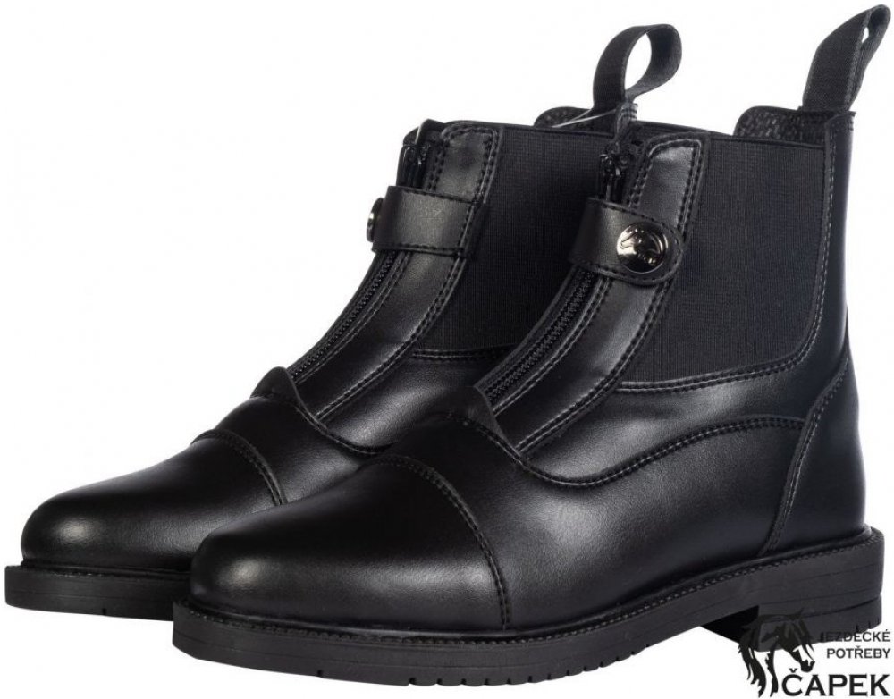 Pohodlné jezdecké pérka pro maximální požitek z jízdy i pro ty nejmenší milovníky koní. umělá kůže bezpečnostní podpatek elastické vložky pro ideální přizpůsebení k noze na obouch stranách přední zip pro rychlé nazování/vyzouvání cok na zabezpeční zipu smyčka jako pomůcka při nazouvání materiál: syntetická kůže, syntetická podrážka